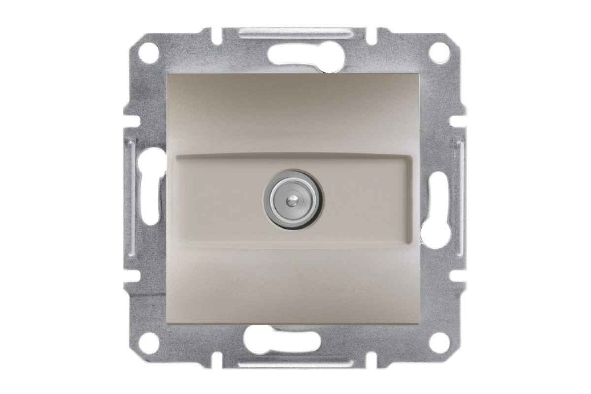 TV-розетка Schneider Electric Asfora EPH3200169 кольору бронза - це готовий до встановлення виріб. TV-розетка – кінцева, а штекер типу тато IEC 9,52 мм. Спосіб кріплення - монтажні лапки. Розмір цієї TV-розетки становить 71 мм, 71 мм і 38 мм, з глибиною виступу 10 мм. Передбачено прихований монтаж. Глянцеве покриття робить її яскравою та привабливою. Клеми безгвинтові. Ступінь захисту IP20. Виготовлена з матеріалу ABS (акрилонітрил-бутадієн-стирол). Має мідний провідник. Крім того, вона має знак якості CE. Більше того, TV-розетка кваліфікується як екологічний продукт преміум-класу. Не містить ртуті. Крім того, TV-розетка спеціально розроблена для житлових та невеликих комерційних приміщень. Asfora - це серія електроустановчих виробів, включаючи електричні вимикачі, світлорегулятори, інформаційні та силові розетки, а також вимикачі для жалюзі. Витончений елегантний дизайн ідеально гармонує практично з будь-яким інтер’єром. Продукція Asfora приємна на дотик, як і на око, виготовлена з високоякісних матеріалів, які з часом не жовтіють.