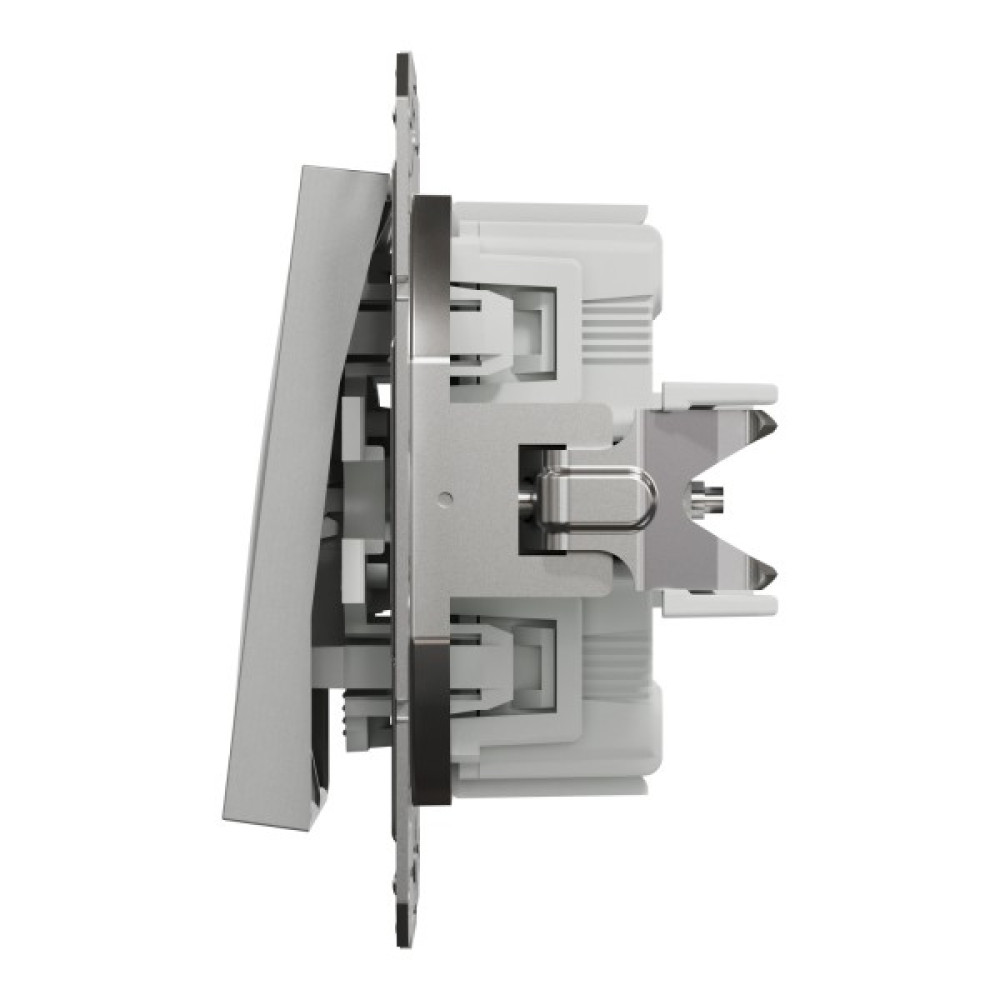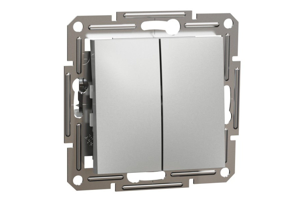Електричний вимикач Schneider Electric Asfora EPH0300161 кольору алюміній - це механізм з супортом та з 2 накладками. Вимикач двоклавішний. Спосіб кріплення - гвинти або монтажні лапки. Номінальний струм вимикача 10 A, потужність 2300 Вт. 71 мм, 71 мм, 43 мм є розмірами цього перемикача з глибиною виступу 15 мм. Передбачено прихований монтаж. Покриття поверхні робить його надзвичайно стійким до зносу та корозії. Ступінь захисту IP20. Клеми безгвинтові. Перемикач виготовлений з ABS (акрилонітрил-бутадієн-стирол) пластику, що робить його максимально стійким. Має мідний провідник. Він отримав сертифікати NF, TSE, VDE. Повністю відповідає стандарту IEC 60669-1. Має знак якості CE, UKR. Крім того, це екологічний продукт преміум-класу. Не містить ртуті. Оновлені вимикачі Asfora тепер мають менші, більш компактні механізми, профільовані супорти, покращені отвори для проводів і затискачі, монтажні лапки з поворотною пружиною, що покращує якість і функціональність цих вимикачів. Продукція Asfora виготовлена з високоякісних матеріалів, які не жовтіють з часом. Витончений та елегантний дизайн ідеально гармонує практично з будь-яким інтерєром.