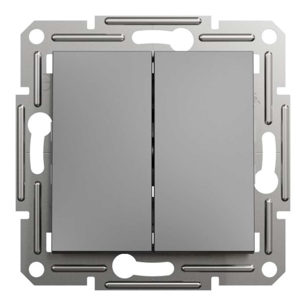 Електричний вимикач Schneider Electric Asfora EPH0300171 кольору антрацит - це механізм з супортом та з 2 накладками. Вимикач двоклавішний. Спосіб кріплення - гвинти або монтажні лапки. Номінальний струм вимикача 10 A, потужність 2300 Вт. Вимикач має ширину 71 мм, висоту 71 мм і глибину 43 мм, а його глибина виступу становить 15 мм. Передбачено прихований монтаж. Покриття поверхні допомагає підвищити естетичний вигляд цього вимикача, водночас робить його надзвичайно стійким до зносу та корозії. Ступінь захисту IP20. Клеми безгвинтові. Вимикач виготовлено з ABS (акрилонітрил-бутадієн-стирол) пластику. Має мідний провідник. Він отримав сертифікати NF, TSE, VDE. Повністю відповідає стандарту IEC 60669-1. Має знак якості CE, UKR. Крім того, це екологічний продукт преміум-класу. Не містить ртуті та важких металів. Оновлені вимикачі Asfora тепер мають менші, більш компактні механізми, профільовані супорти, покращені отвори для проводів і затискачі, монтажні лапки з поворотною пружиною, що покращує якість і функціональність цих вимикачів. Продукція Asfora виготовлена з високоякісних матеріалів, які не жовтіють з часом. Витончений та елегантний дизайн ідеально гармонує практично з будь-яким інтерєром.