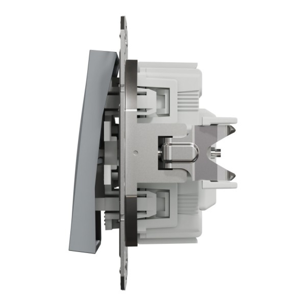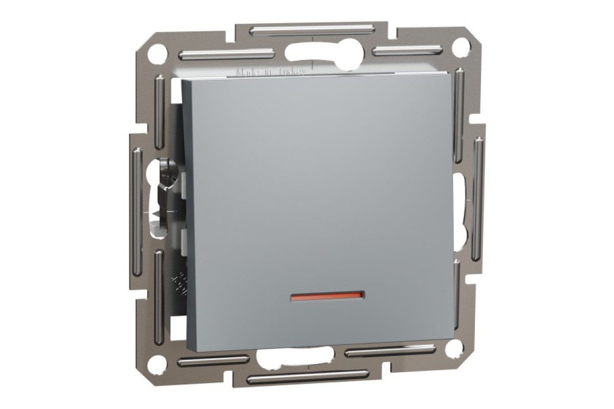 Вимикач одноклавішний, з підсвіткою, Самозажимний, Asfora Сталь