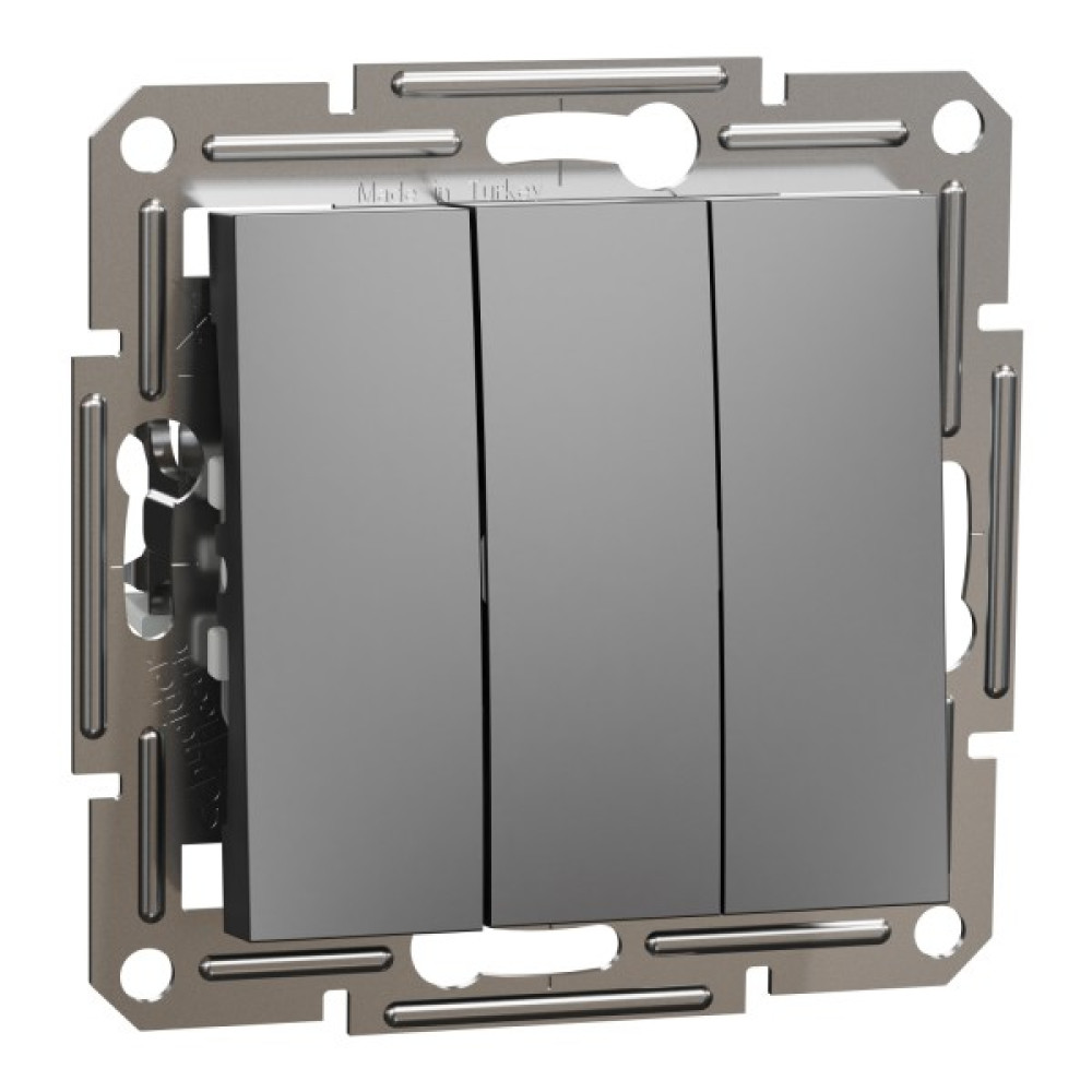 Вимикач Schneider Electric Asfora EPH2100171 кольору антрацит - це механізм з супортом та 3 накладками. Вимикач трьохклавішний. Розміри цього вимикача 83 мм, 43 мм і 83 мм. Передбачено прихований монтаж. Глянцева поверхня створює відчуття елегантності в кімнаті. Ступінь захисту IP20. Вимикач досить стійкий. Крім того, це екологічний продукт преміум-класу. Оновлені вимикачі Asfora тепер мають менші, більш компактні механізми, профільовані супорти, покращені отвори для проводів і затискачі, монтажні лапки з поворотною пружиною, що покращує якість і функціональність цих вимикачів. Продукція Asfora виготовлена з високоякісних матеріалів, які не жовтіють з часом. Витончений та елегантний дизайн ідеально гармонує практично з будь-яким інтерєром.