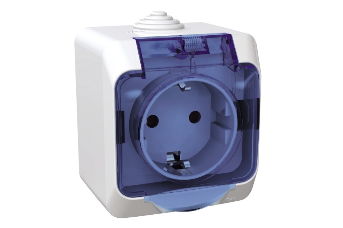 Розетка з заземленням та шторками IP44, з прозорою кришкою Cedar Plus, біла