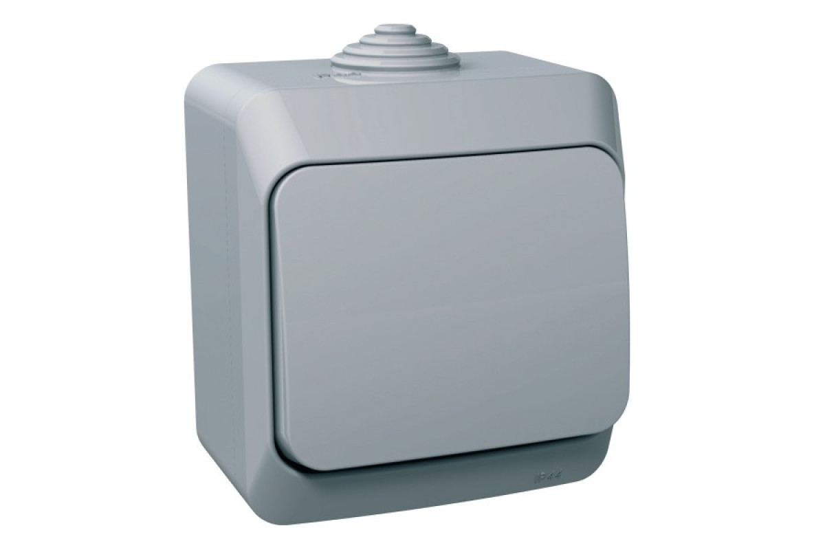 Вимикач 1-клавішний IP44 Cedar Plus, накладний монтаж, сірий.
