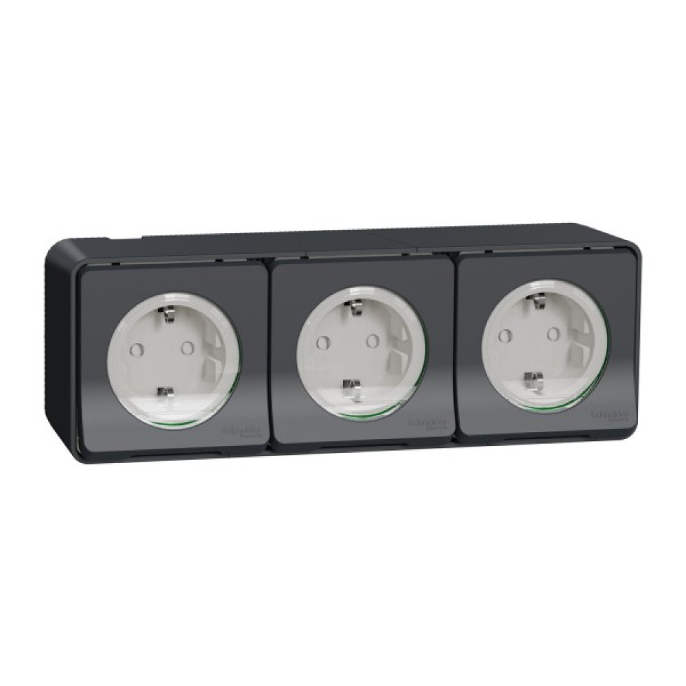 Потрійний розетковий блок з заземленням та шторками Mureva Styl MUR36038 має ступінь захисту ІР55. Розетки можуть бути обладнанні світлодіодом, який забезпечує його видимість у темряві. Завдяки ергономічній конструкції з виробом легко працювати та просто користуватись. Корпус розетки стійкий до пошкоджень, може встановлюватись в приміщенні та поза ним. Прозора кришка дозволяє бачити механізм, щоб відризнити механізм розетки від вимикача.