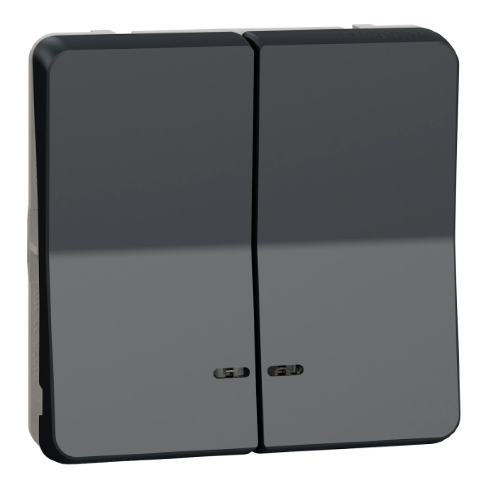 Механізм подвійного кнопкового вимикача з підсвіткою Mureva Styl MUR35228 має ступінь захисту ІР55. LED підсвітка допомагає знайти вимикач у темряві. Характерний як прихований так і поверхневий монтаж. Виріб має наступні розміри: 71х71х40 мм.