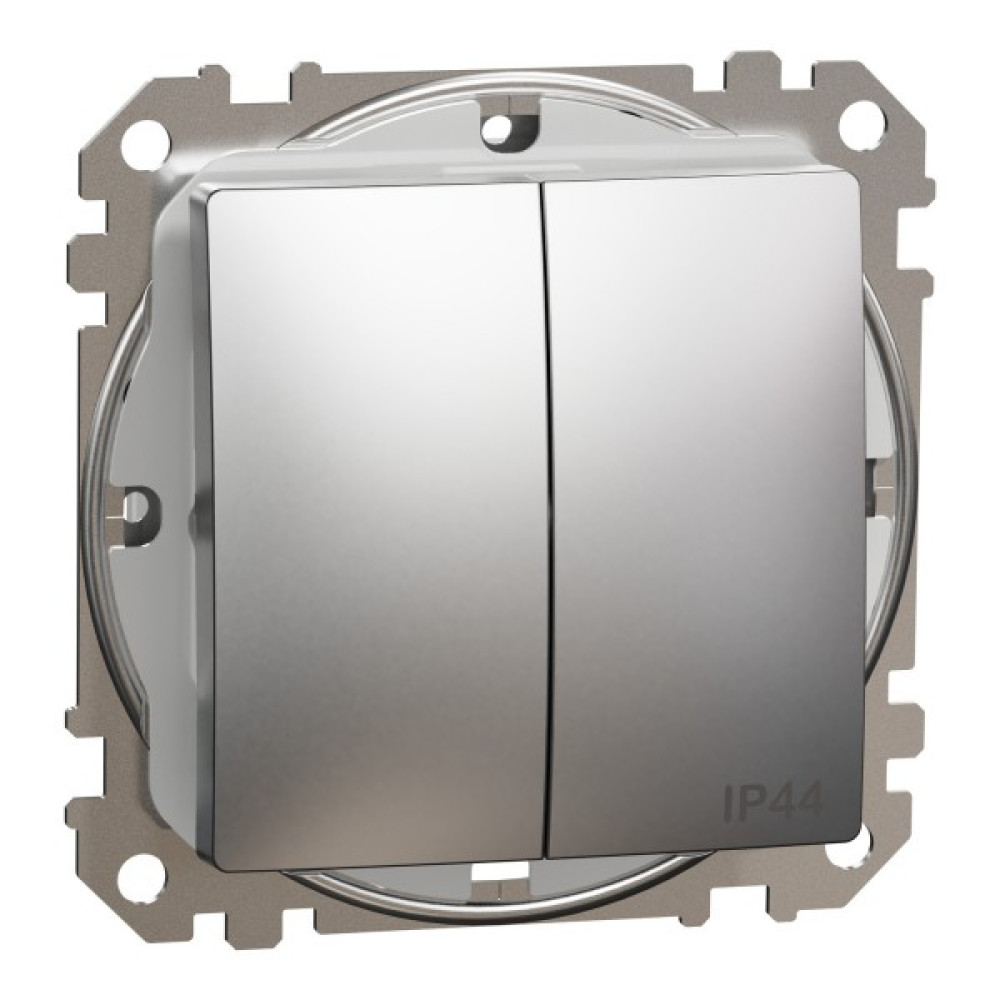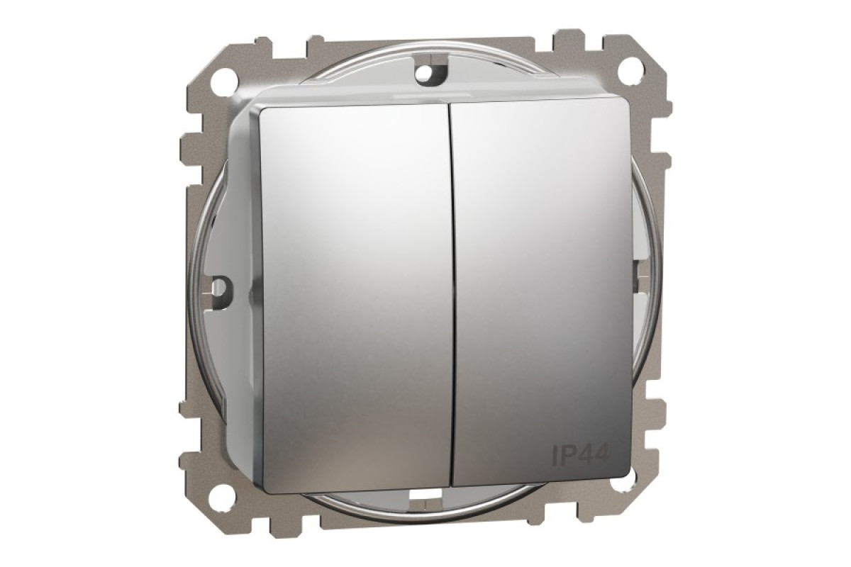Двоклавішний вимикач IP44, 10А, Матовий алюміній Sedna Elements