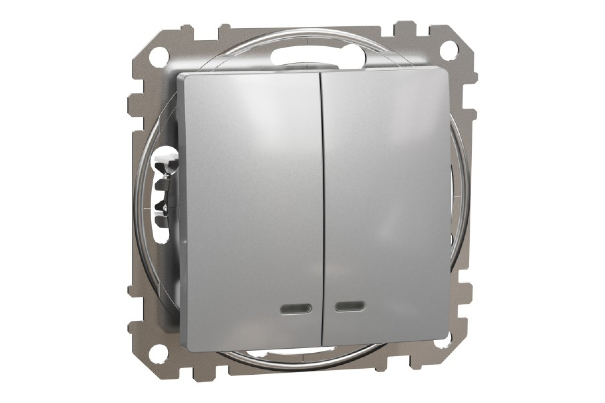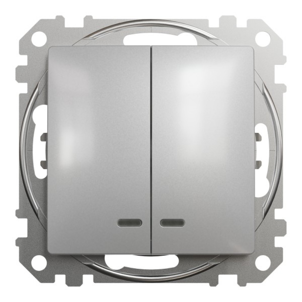 Двоклавішний вимикач з підсвіткою Алюміній Sedna Design