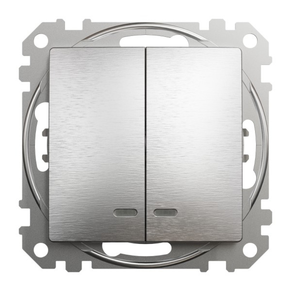 Двоклавішний вимикач з синьою LED підсвіткою 10 АХ Матовий Алюміній Sedna Elements