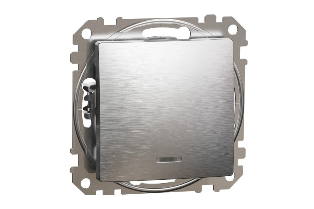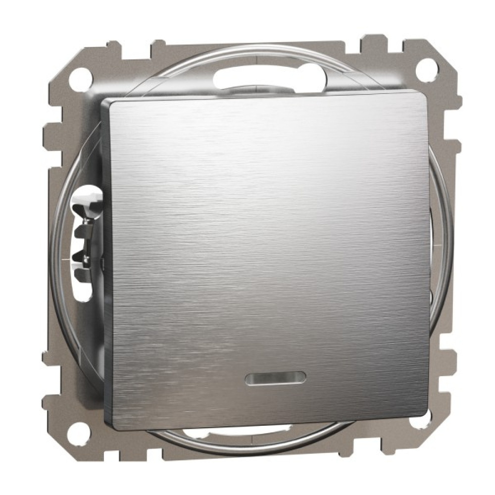 Одноклавішний вимикач з синьою LED підсвіткою 10 АХ Матовий Алюміній Sedna Elements