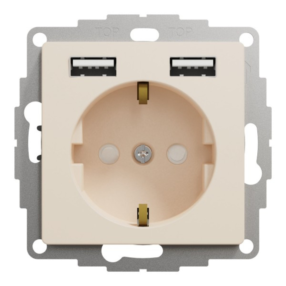 Розетка з заземленням + 2 USB тип А Бежевий Sedna Design