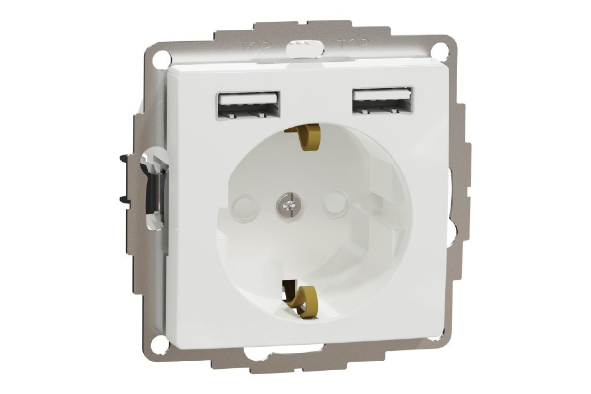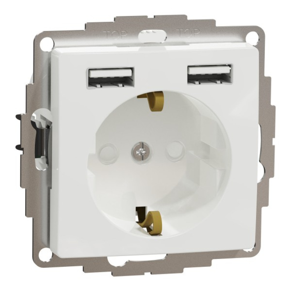 Розетка з заземленням + 2 USB тип А Білий Sedna Design