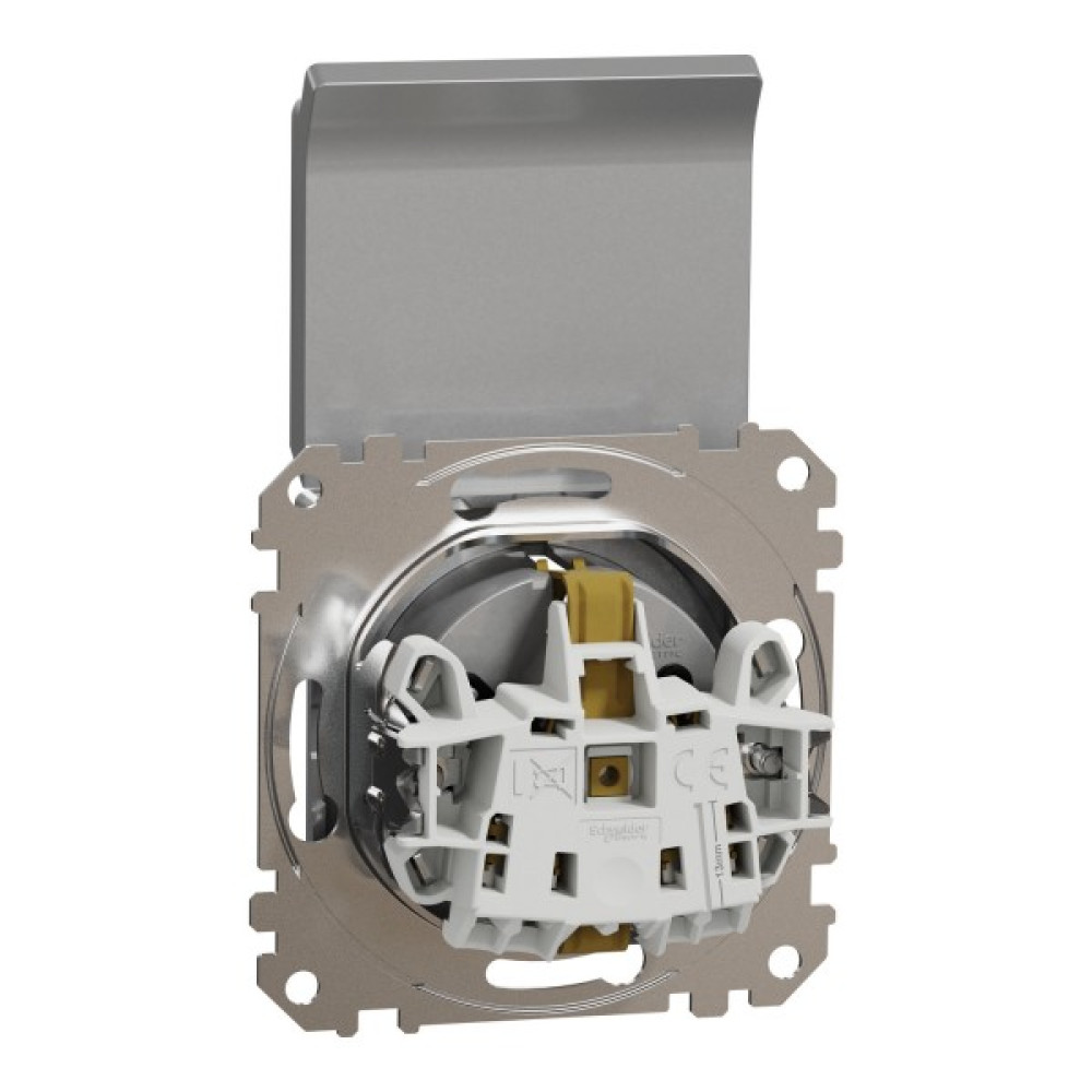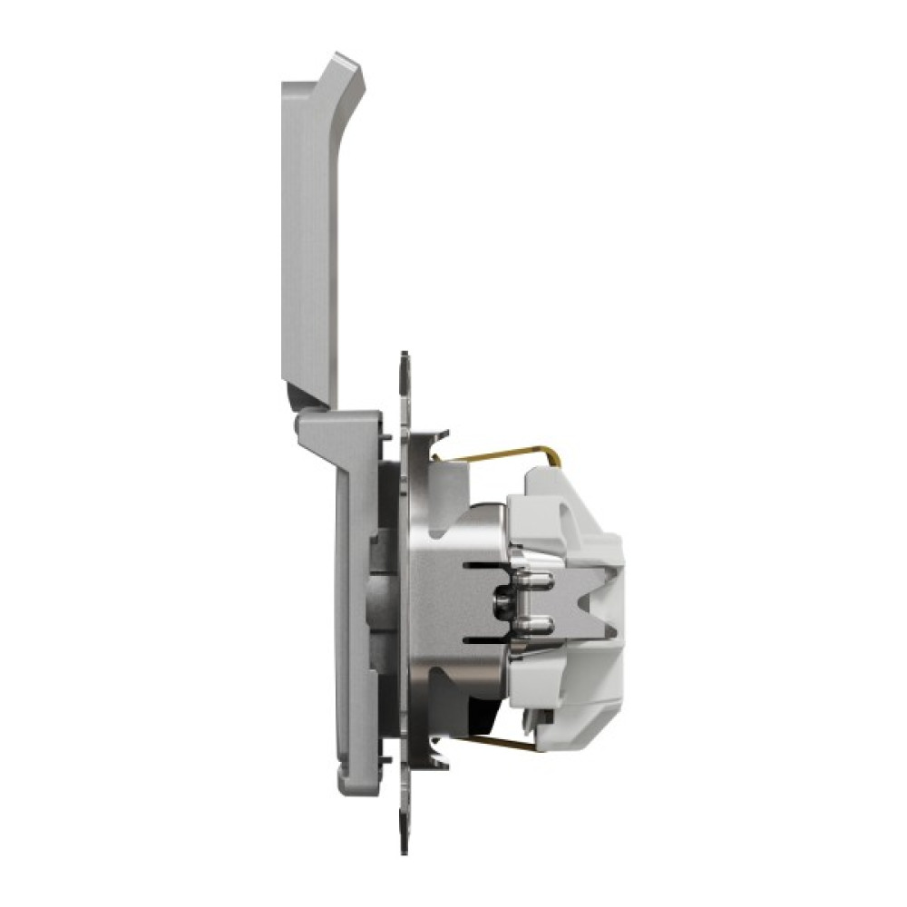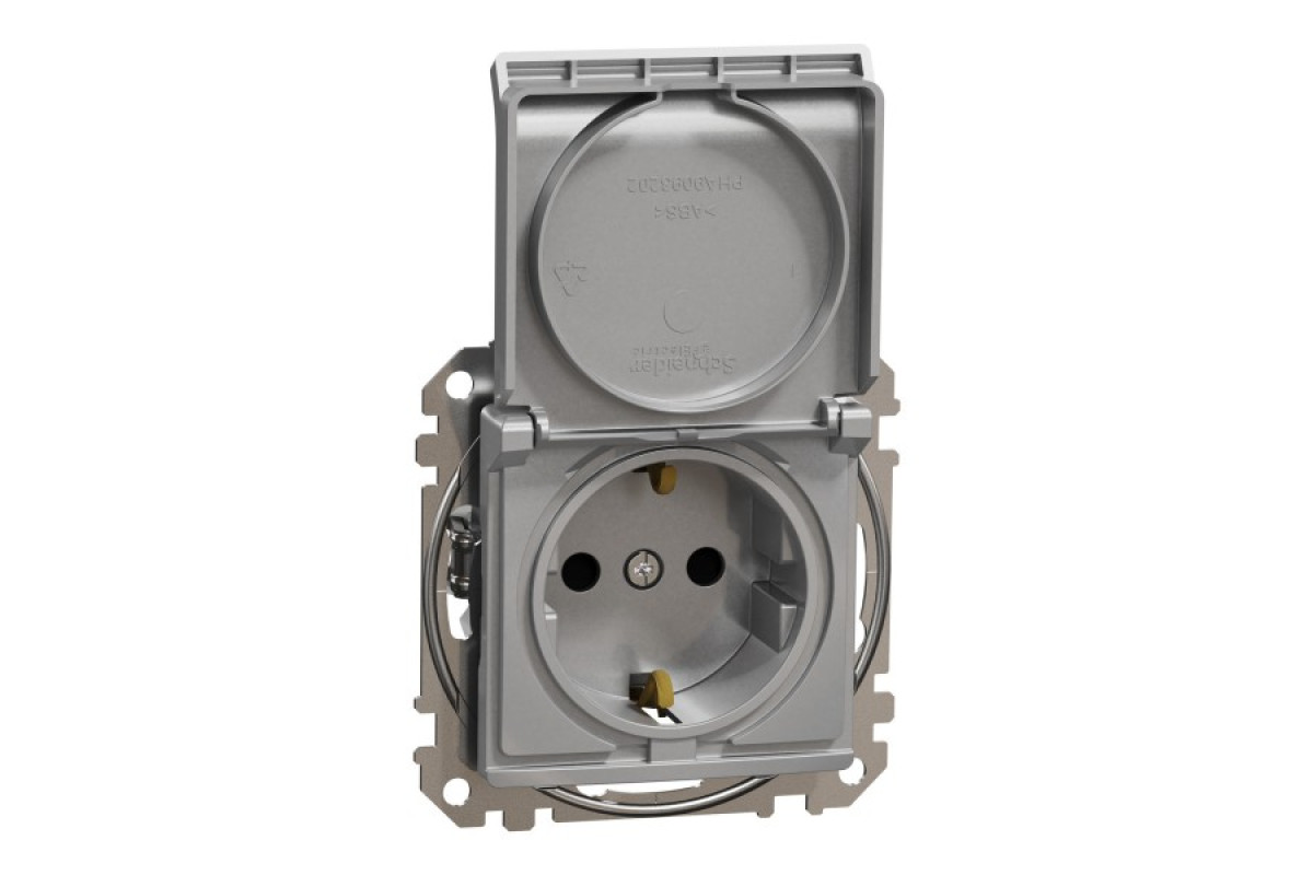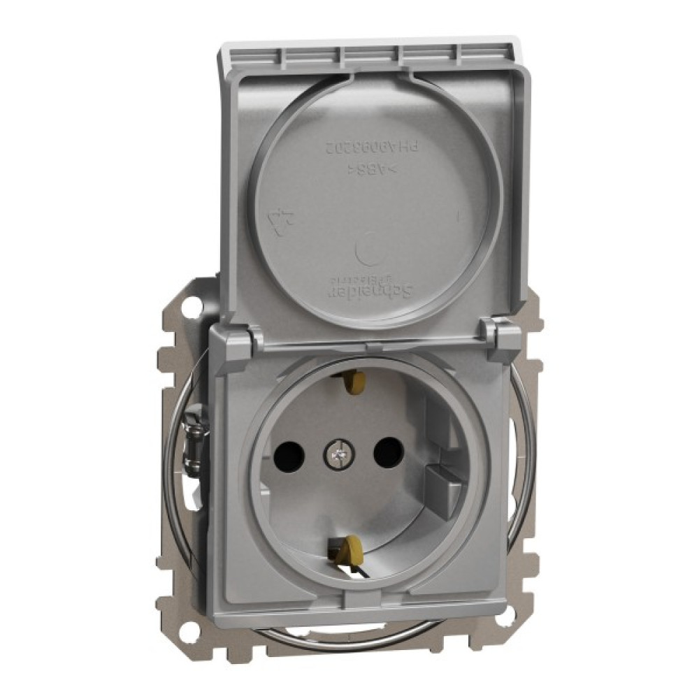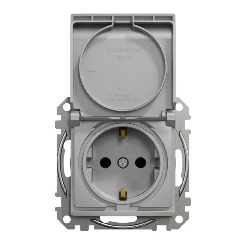 Розетка з заземленням, зі шторками та кришкою Алюміній Sedna Design