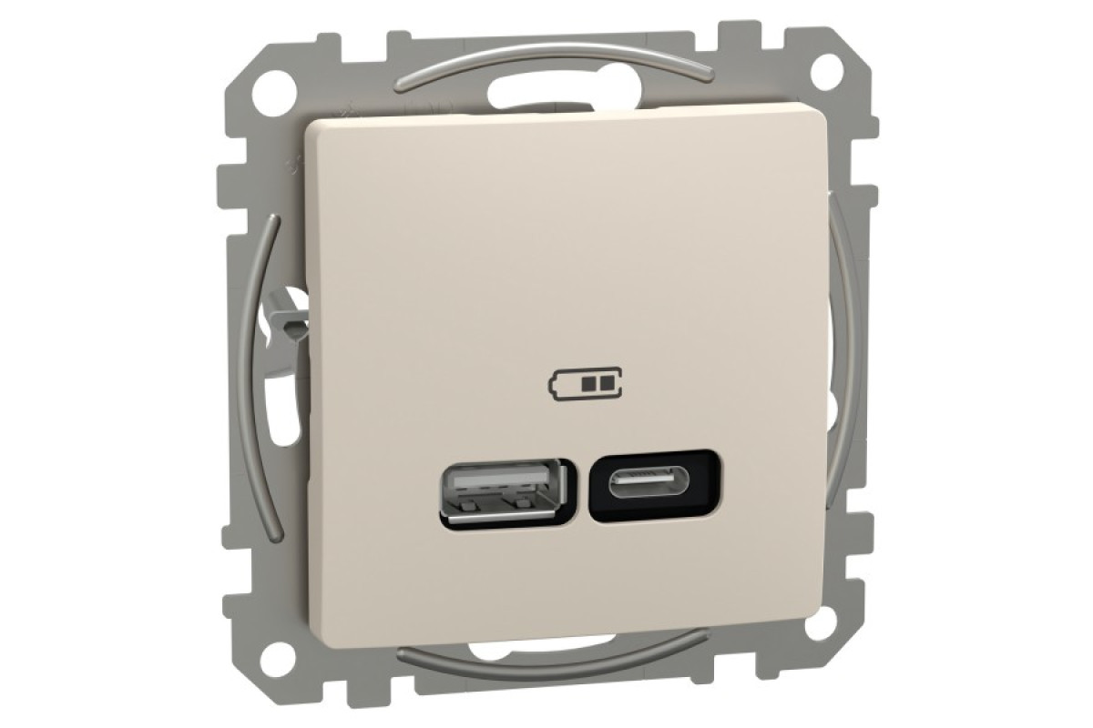 USB розетка, Sedna Design & Elements, тип A+C, 3 A, 21 Вт, бежевий