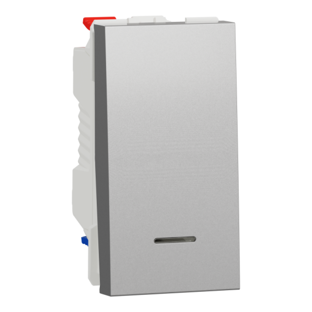 Перемикач 1-клавішний, з нейтраллю, 10А, 1 модуль алюміній