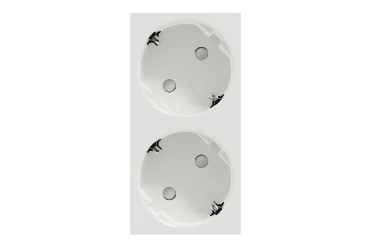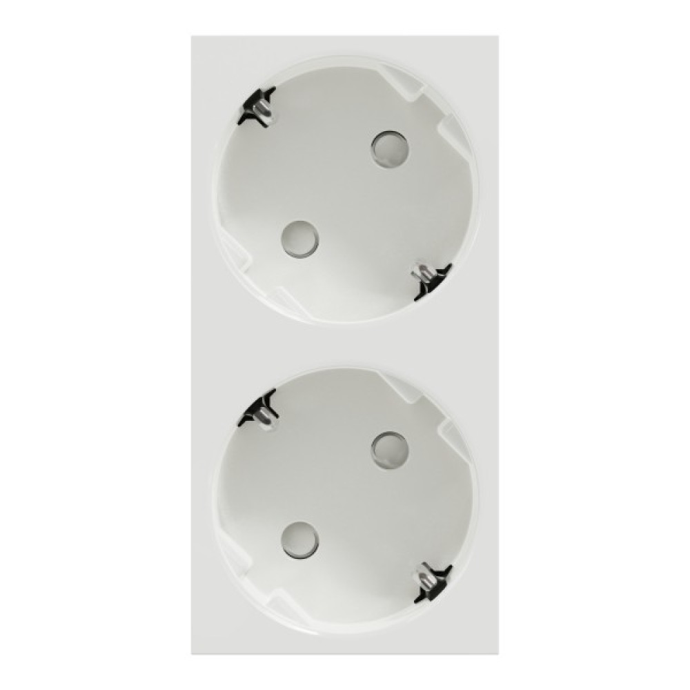 Подвійна розетка 45° зі шторками, з заземленням, біла