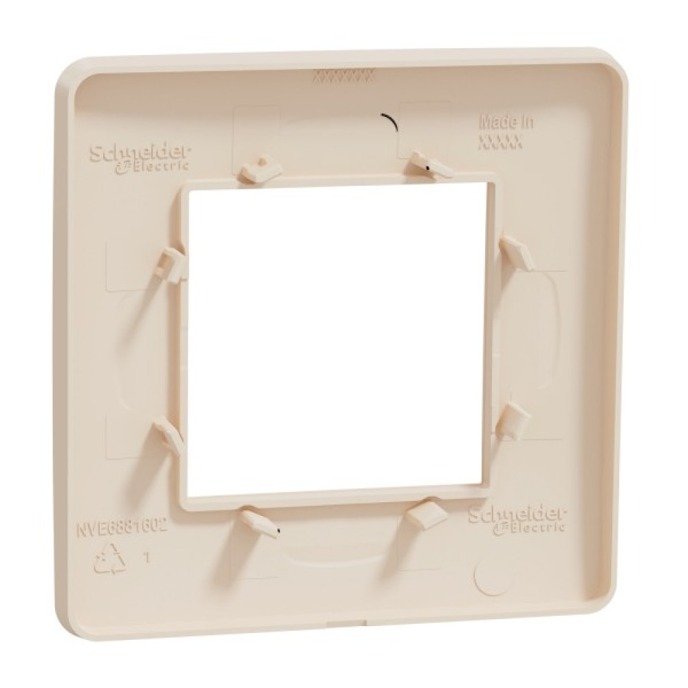 Рамка Schneider Electric New Unica NU200244 бежевого кольору. Рамка є екологічно чистим продуктом преміум-класу. Рамка - однопостова. Вона виготовлена з термопластику ABS-UV-стабілізованого. Ступінь ударозахисту IK04. Крім того, вона екологічно чиста, стійка до ультрафіолету, ацетону, спирту, аміаку, відбілювача, рідкого мила, масла, бензину, рідини для миття вікон. Вона не містить SVHC (особливо небезпечні речовини). Рамка входить в групу Unica Studio. Відповідає стандартам МЕК 60669-1, МЕК 60884-1. Її ширина 85 мм, висота 85 мм, глибина 10 мм. Вага 0,013 кг. Не містить галогенів. Спосіб кріплення: затисканням. Unica розроблена з розумними функціями, щоб бути гнучкою, простою для розуміння та швидкою для встановлення, забезпечуючи рішення для всіх вимог клієнтів.