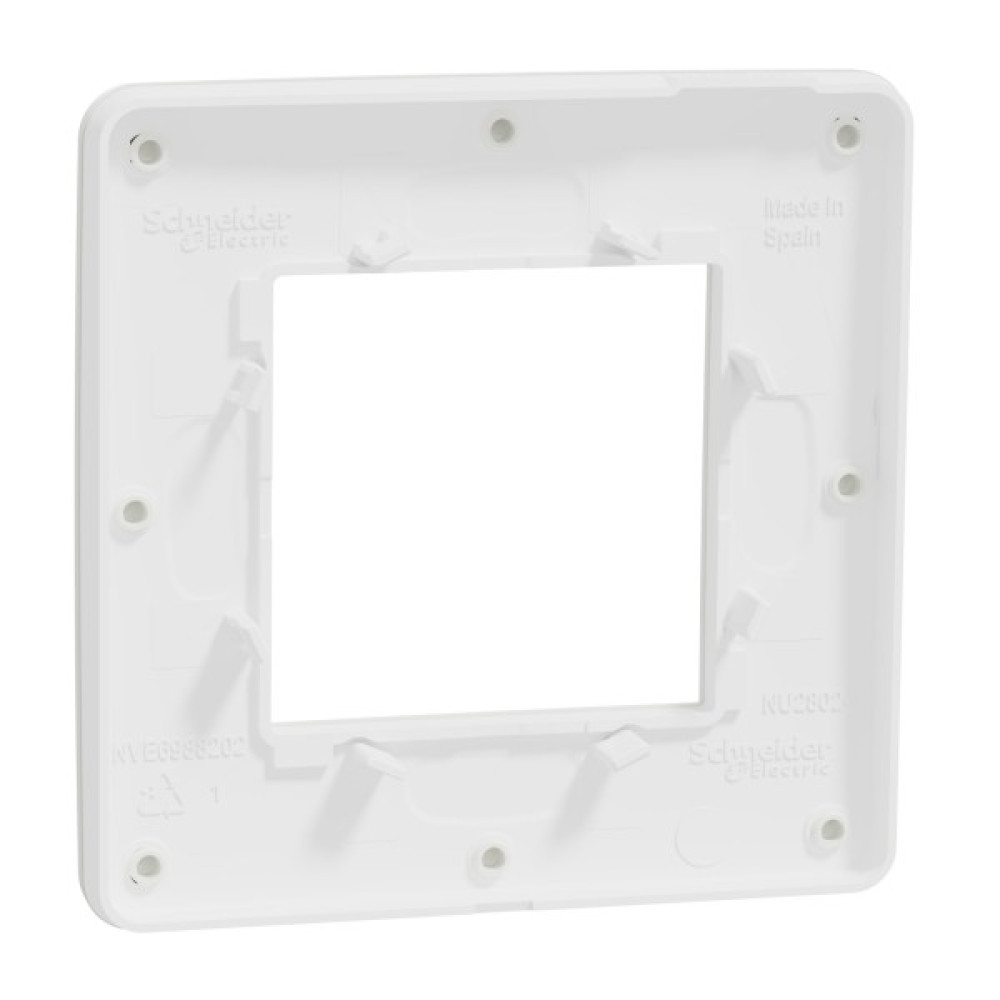 Рамка Schneider Electric New Unica NU280218 білого кольору. Рамка є екологічно чистим продуктом преміум-класу. Рамка - однопостова. Вона виготовлена з термопластику ABS-UV-стабілізованого. Ступінь ударозахисту IK04. Крім того, вона екологічно чиста, стійка до ультрафіолету, ацетону, спирту, аміаку, відбілювача, рідкого мила, масла, бензину, рідини для миття вікон. Вона не містить SVHC (особливо небезпечні речовини). Рамка входить в групу Unica Studio. Відповідає стандартам МЕК 60669-1, МЕК 60884-1. Її ширина 85 мм, висота 85 мм, глибина 10 мм. Вага 0,02 кг. Не містить галогенів. Спосіб кріплення: затисканням. Unica розроблена з розумними функціями, щоб бути гнучкою, простою для розуміння та швидкою для встановлення, забезпечуючи рішення для всіх вимог клієнтів.