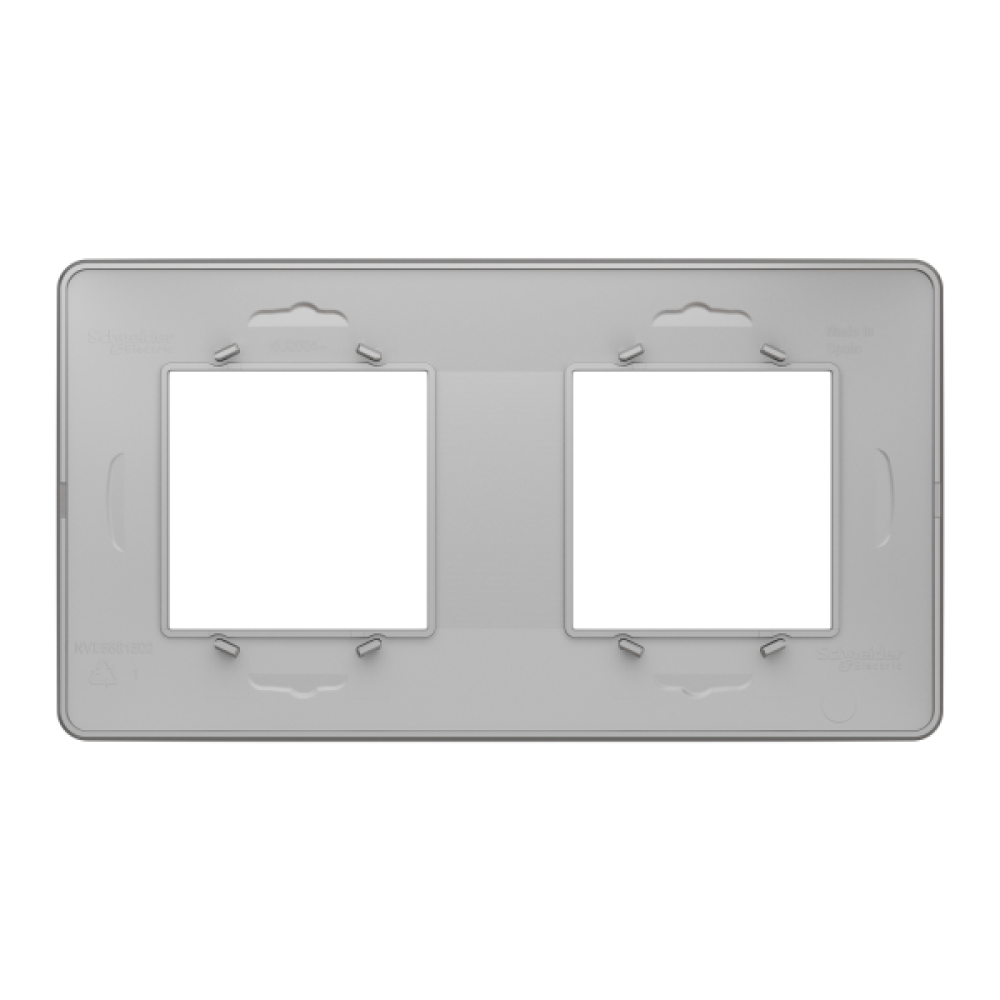 Рамка Schneider Electric New Unica NU200430 кольору алюміній. Рамка є екологічно чистим продуктом преміум-класу. Рамка - двопостова. Вона виготовлена з термопластику ABS-UV-стабілізованого. Ступінь ударозахисту IK04. Крім того, вона екологічно чиста, стійка до ультрафіолету, ацетону, спирту, аміаку, відбілювача, рідкого мила, масла, бензину, рідини для миття вікон. Вона не містить SVHC (особливо небезпечні речовини). Рамка входить в групу Unica Studio. Відповідає стандартам МЕК 60669-1, МЕК 60884-1. Її ширина 185 мм, висота 85 мм, глибина 10 мм. Вага 0,021 кг. Не містить галогенів. Спосіб кріплення: затисканням. Unica розроблена з розумними функціями, щоб бути гнучкою, простою для розуміння та швидкою для встановлення, забезпечуючи рішення для всіх вимог клієнтів.