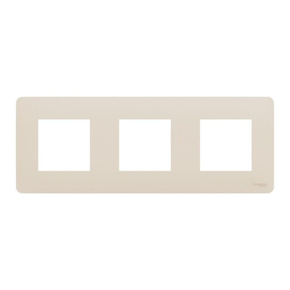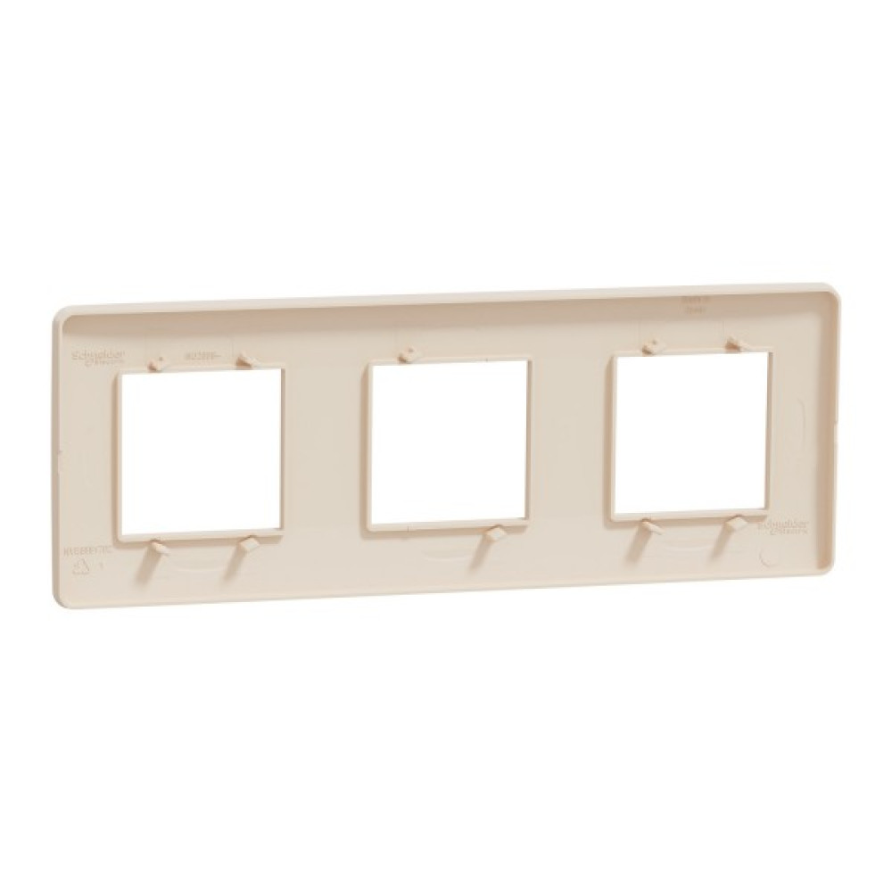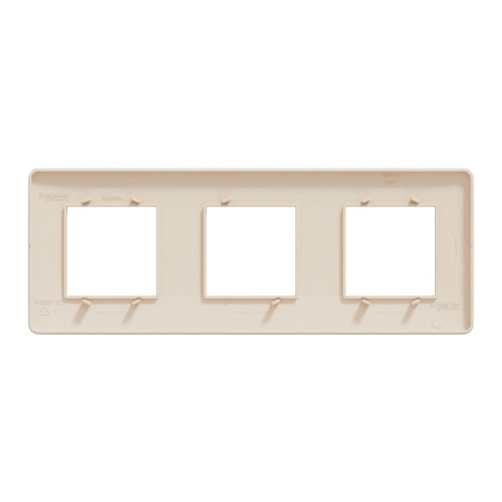 Рамка Schneider Electric New Unica NU200644 бежевого кольору. Вона виготовлена з термопластику ABS-UV-стабілізованого. Рамка - трьохпостова. Ступінь ударозахисту IK04. Крім того, вона екологічно чиста, стійка до ультрафіолету, ацетону, спирту, аміаку, відбілювача, рідкого мила, масла, бензину, рідини для миття вікон. Вона не містить SVHC (особливо небезпечні речовини). Рамка входить в групу Unica Studio. Відповідає стандартам МЕК 60669-1, МЕК 60884-1. Її ширина 227 мм, висота 85 мм, глибина 10 мм. Не містить галогенів. Спосіб кріплення: затисканням. Вага 0,035 кг. Unica розроблена з розумними функціями, щоб бути гнучкою, простою для розуміння та швидкою для встановлення, забезпечуючи рішення для всіх вимог клієнтів.