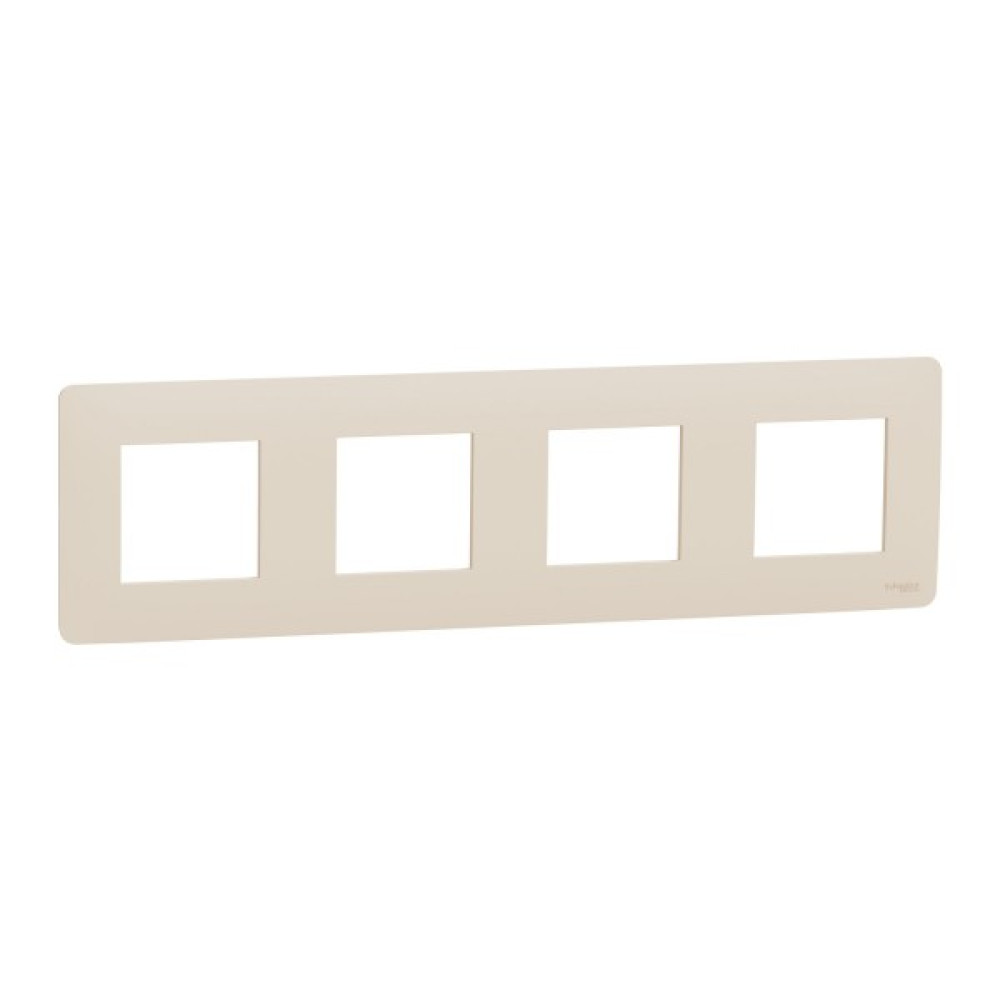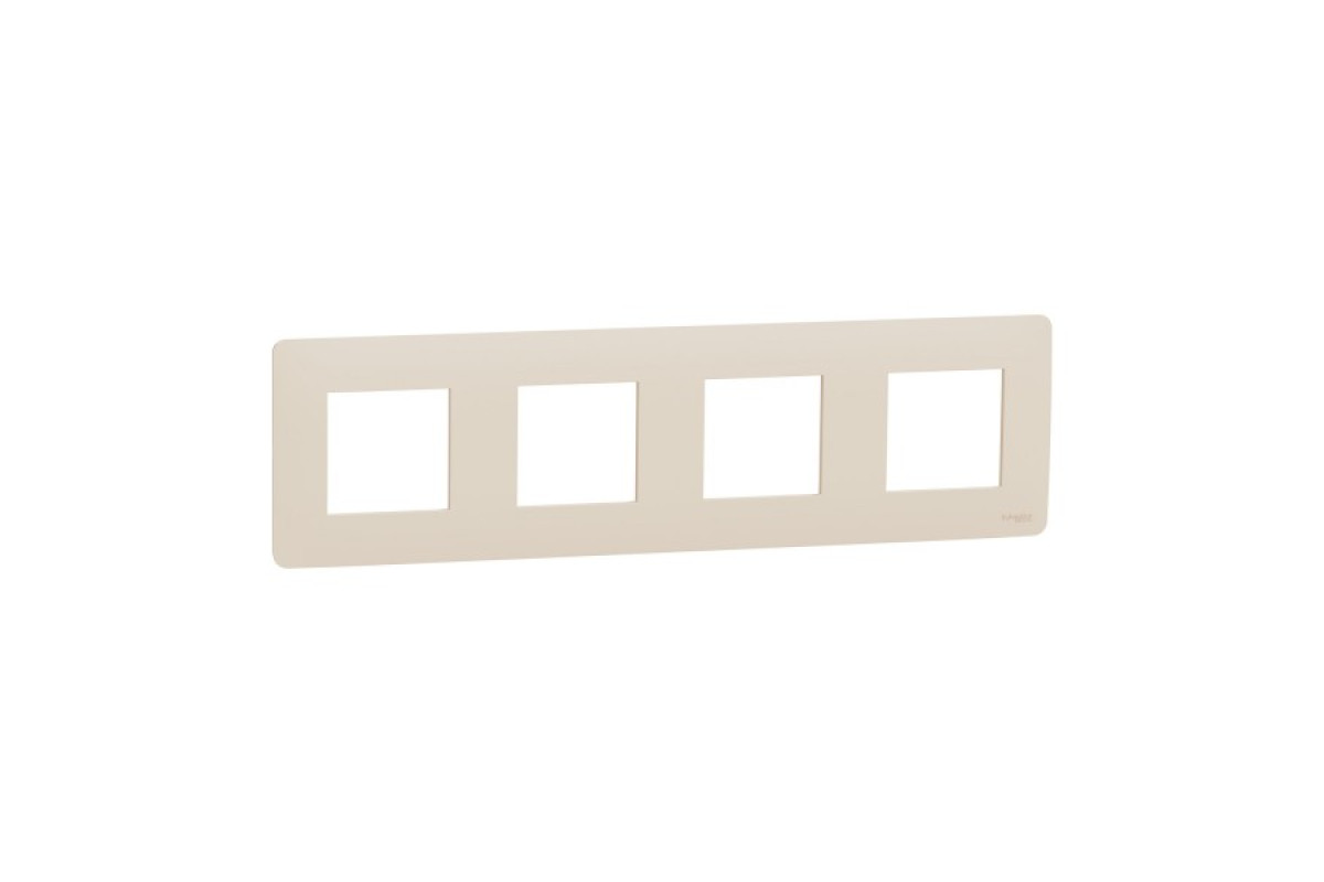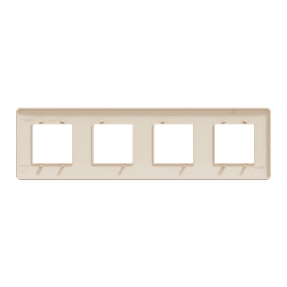 Рамка Schneider Electric New Unica NU200844 бежевого кольору. Вона виготовлена з термопластику ABS-UV-стабілізованого. Рамка - чотирьохпостова. Ступінь ударозахисту IK04. Крім того, вона екологічно чиста, стійка до ультрафіолету, ацетону, спирту, аміаку, відбілювача, рідкого мила, масла, бензину, рідини для миття вікон. Вона не містить SVHC (особливо небезпечні речовини). Рамка входить в групу Unica Studio. Відповідає стандартам МЕК 60669-1, МЕК 60884-1. Її ширина 298 мм, висота 85 мм, глибина 10 мм. Не містить галогенів. Спосіб кріплення: затисканням. Вага 0,042 кг. Unica розроблена з розумними функціями, щоб бути гнучкою, простою для розуміння та швидкою для встановлення, забезпечуючи рішення для всіх вимог клієнтів.