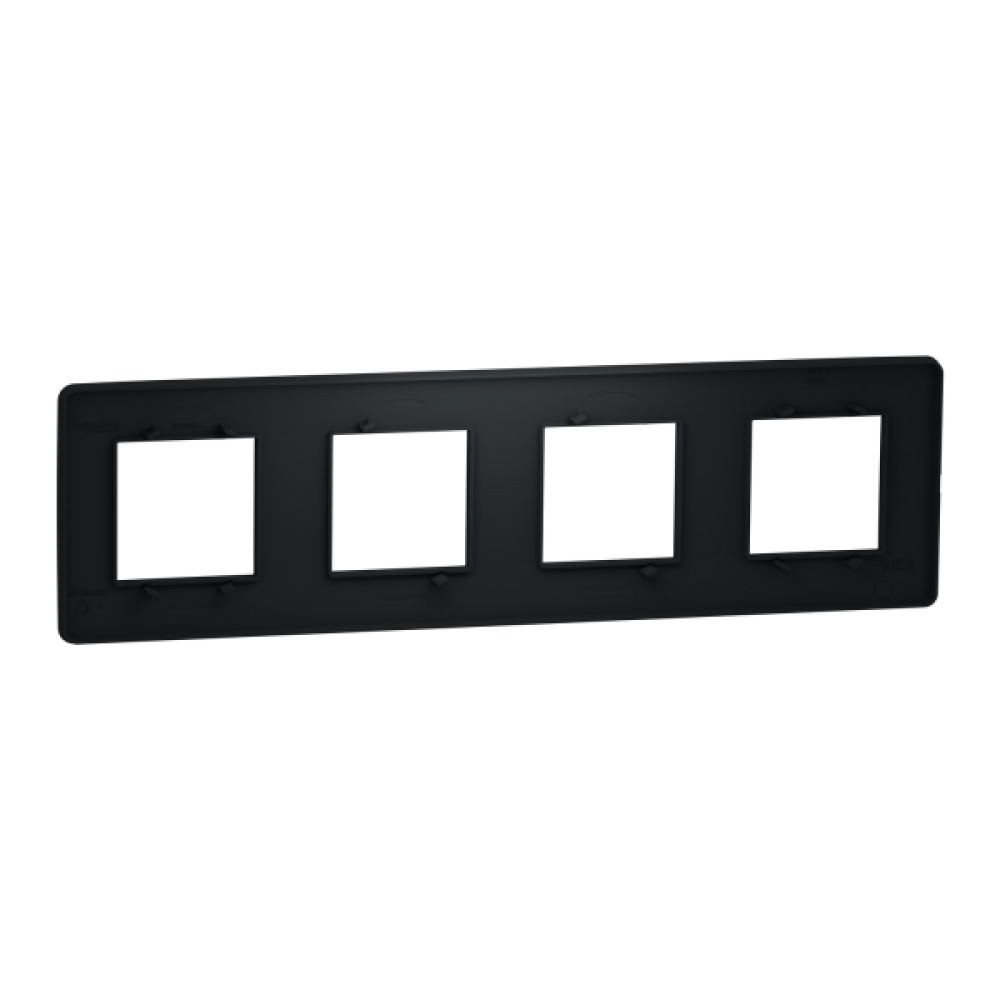 Рамка Schneider Electric New Unica NU200854 кольору антрацит. Вона виготовлена з термопластику ABS-UV-стабілізованого. Рамка - чотирьохпостова. Ступінь ударозахисту IK04. Крім того, вона екологічно чиста, стійка до ультрафіолету, ацетону, спирту, аміаку, відбілювача, рідкого мила, масла, бензину, рідини для миття вікон. Вона не містить SVHC (особливо небезпечні речовини). Рамка входить в групу Unica Studio. Відповідає стандартам МЕК 60669-1, МЕК 60884-1. Її ширина 298 мм, висота 85 мм, глибина 10 мм. Не містить галогенів. Спосіб кріплення: затисканням. Вага 0,042 кг. Unica розроблена з розумними функціями, щоб бути гнучкою, простою для розуміння та швидкою для встановлення, забезпечуючи рішення для всіх вимог клієнтів.