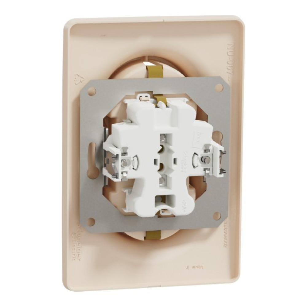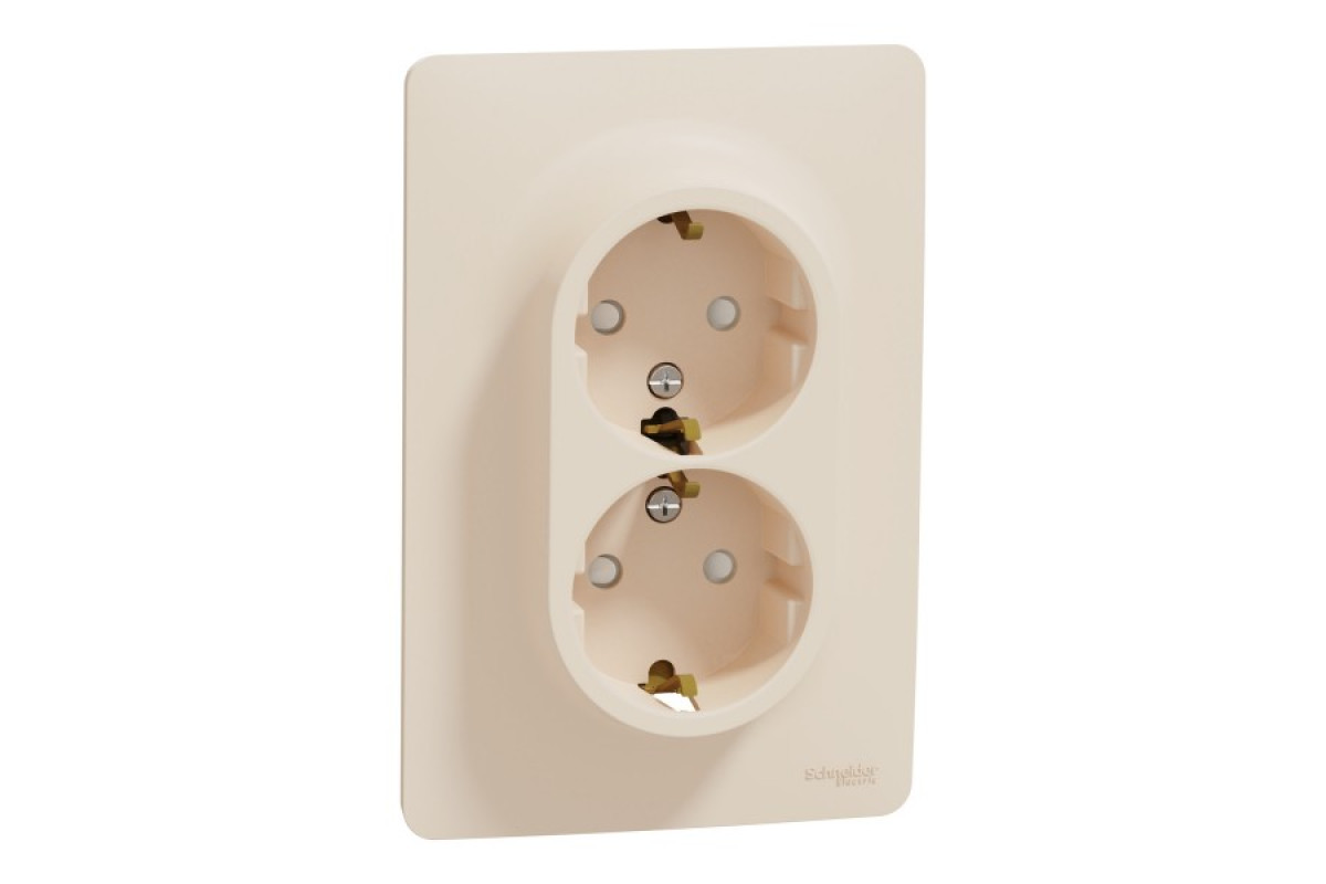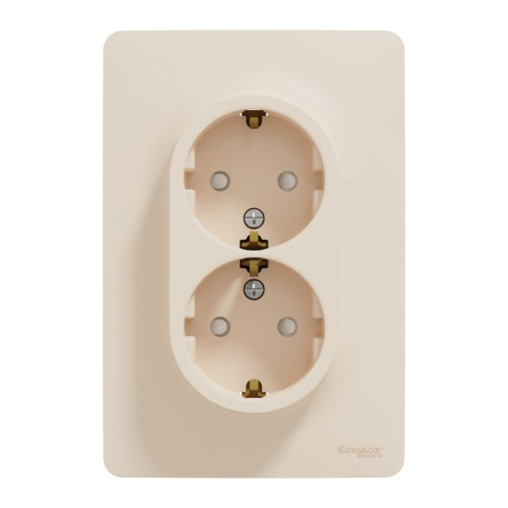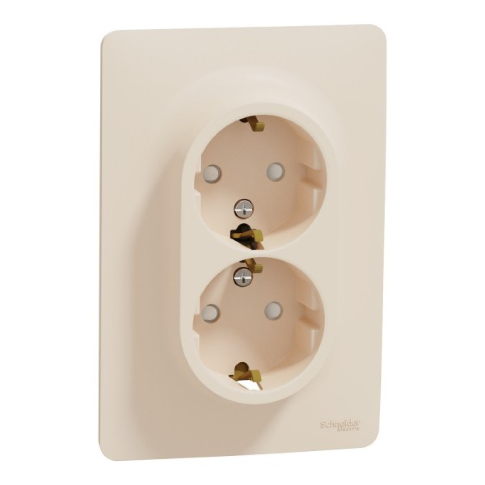 Розетка подвійна з заземленням та шторками Unica New, гвинтові зажими, бежева Unica New