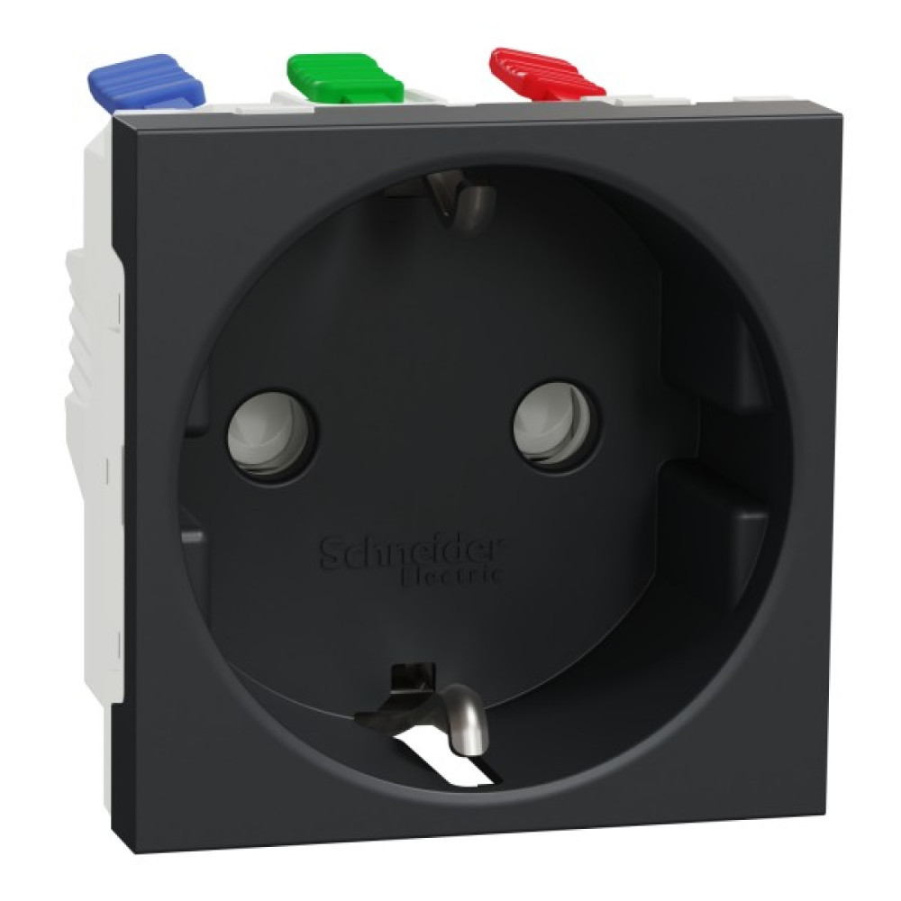 Розетка Schneider Electric New Unica NU305754 - це механізм кольору антрацит. Конфігурація полюса цієї розетки 2P + E з шторкою, що забезпечує захист та безпеку. Цей пристрій відповідає німецьким стандартам. Рівень діелектричної міцності, тобто напруга, яку може витримати матеріал, з якого виконана ця розетка, для даної товщини стінки до пробою діелектрика, становить 2000 В. Її номінальний струм становить 16 АА. Її ширина 45 мм, висота 45 мм, глибина 42 мм. З глибиною закладення 32 мм. Тип монтажу - прихований. Глянцева поверхня створює відчуття елегантності та комфорту в кімнаті. Ступінь захисту IP21D. Він досягає рівня захисту IK04, що допомагає захистити від ударів. Його з’єднувальні клеми є самозажимними. Розетка виготовлена з полікарбонату, що робить її міцною та довговічною. Вона отримала сертифікати AENOR, EAC. Будучи екологічним продуктом преміум-класу, цей пристрій є екологічно чистим. New Unica включає в себе різномаїття нових дизайнів, кольорів і матеріалів. Користувачі отримують задоволення від привабливого дизайну, який відповідає їх стилю, та інноваційних продуктів. New Unica має розумні функції, є гнучкою, зрозумілою та швидко встановлюється.