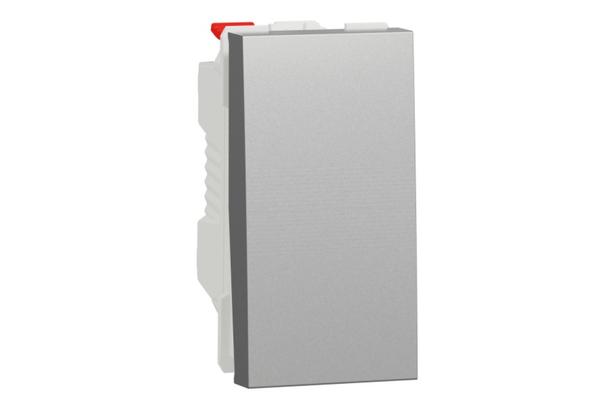 Вимикач 1-клавішний кнопковий схема 1, 10А, 1 модуль алюміній