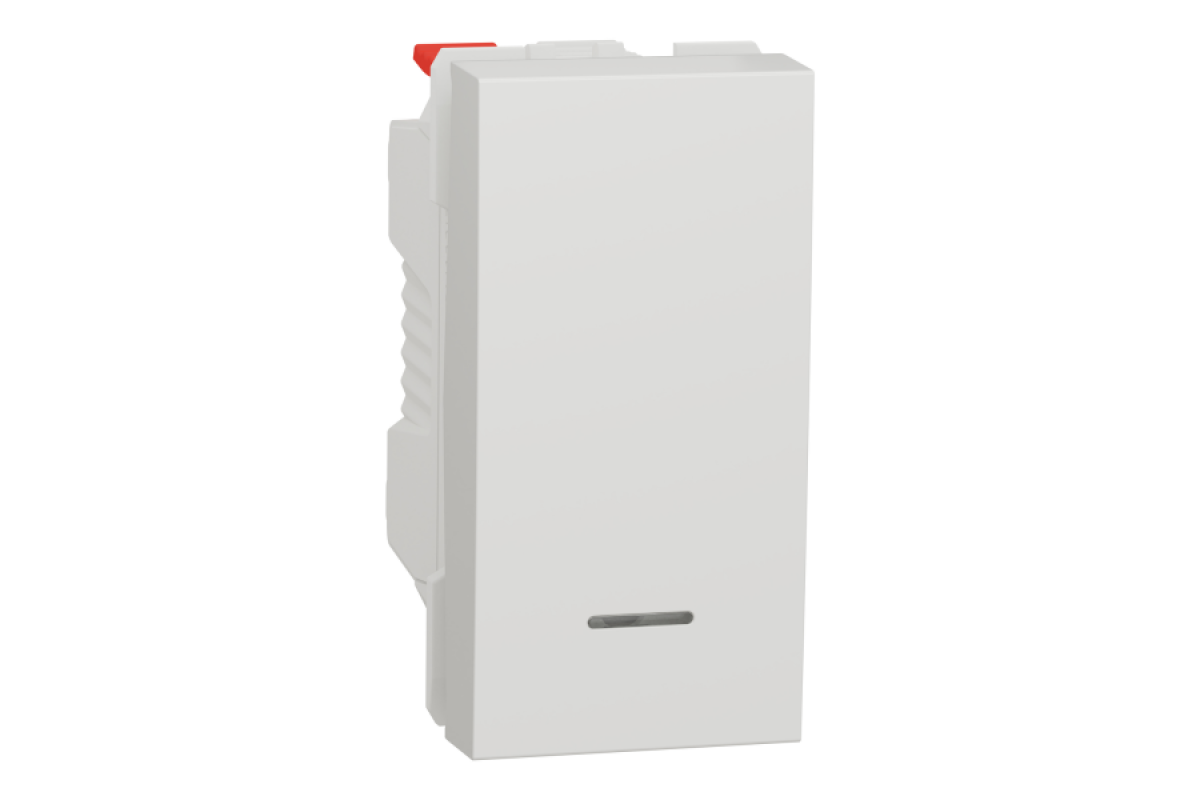 Вимикач 1-клавішний кнопковий з підсвічуванням схема 1а 10А, 1 м білий