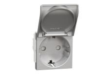 Розетка з заземлення, зі шторками, та з кришкою IP44 Алюміній Sedna Design