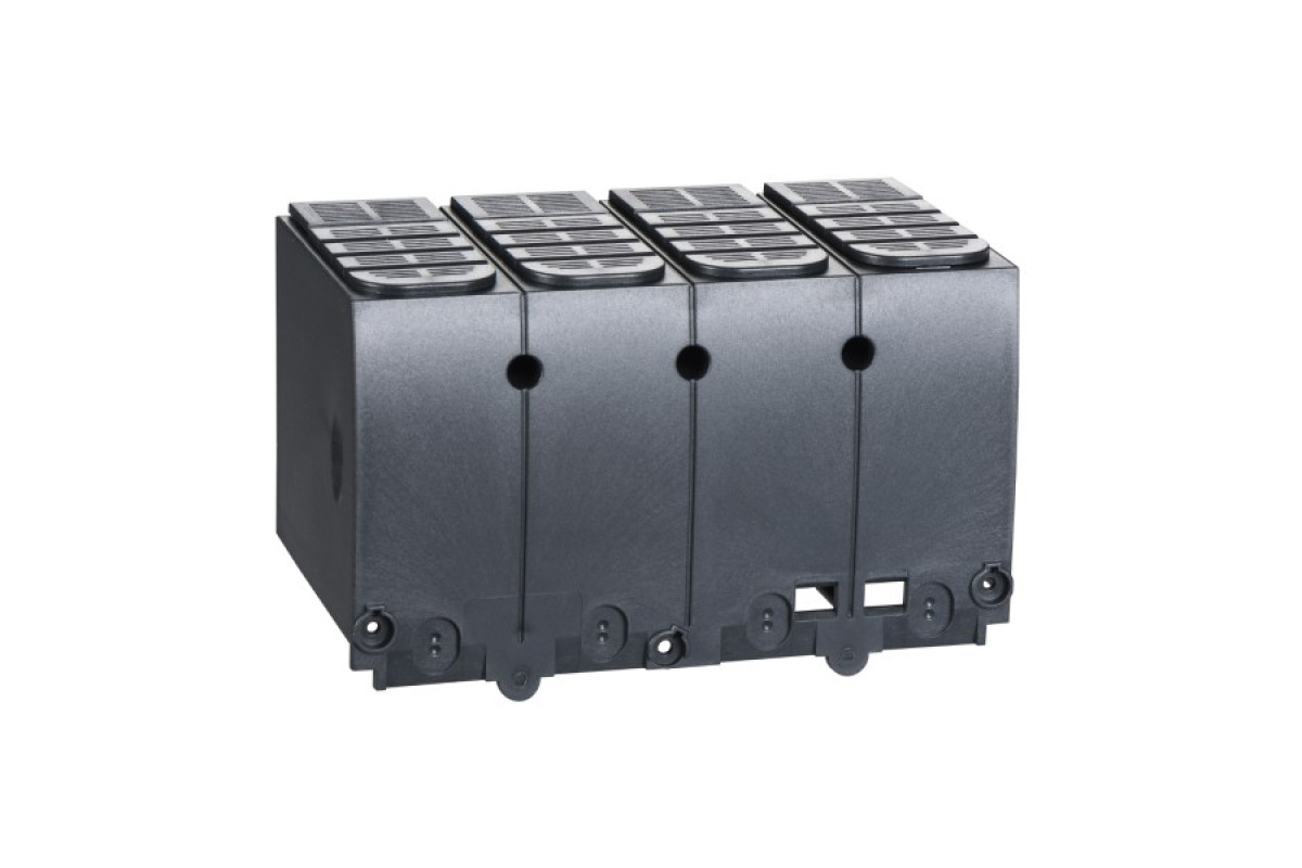 Это изоляционный аксессуар для 4-полюсных Compact NSX 100/160/250 или EasyPact CVS 100/160/250 и TransferPacT 250. Эта удлиненная клеммная крышка защищает от прямого контакта с находящимися под напряжением элементами. Используется с передним подключением кабелями или изолированными шинами. Может быть установлена на вводе или отводе на фиксированные, вточные или выдвижные устройства. Это позволяет достичь изоляционного расстояния, требуемого стандартом IEC 60947-2. Для межполюсного расстояния 35 мм. Обеспечивает степень защиты IP40 и защиту от механических ударов IK07.