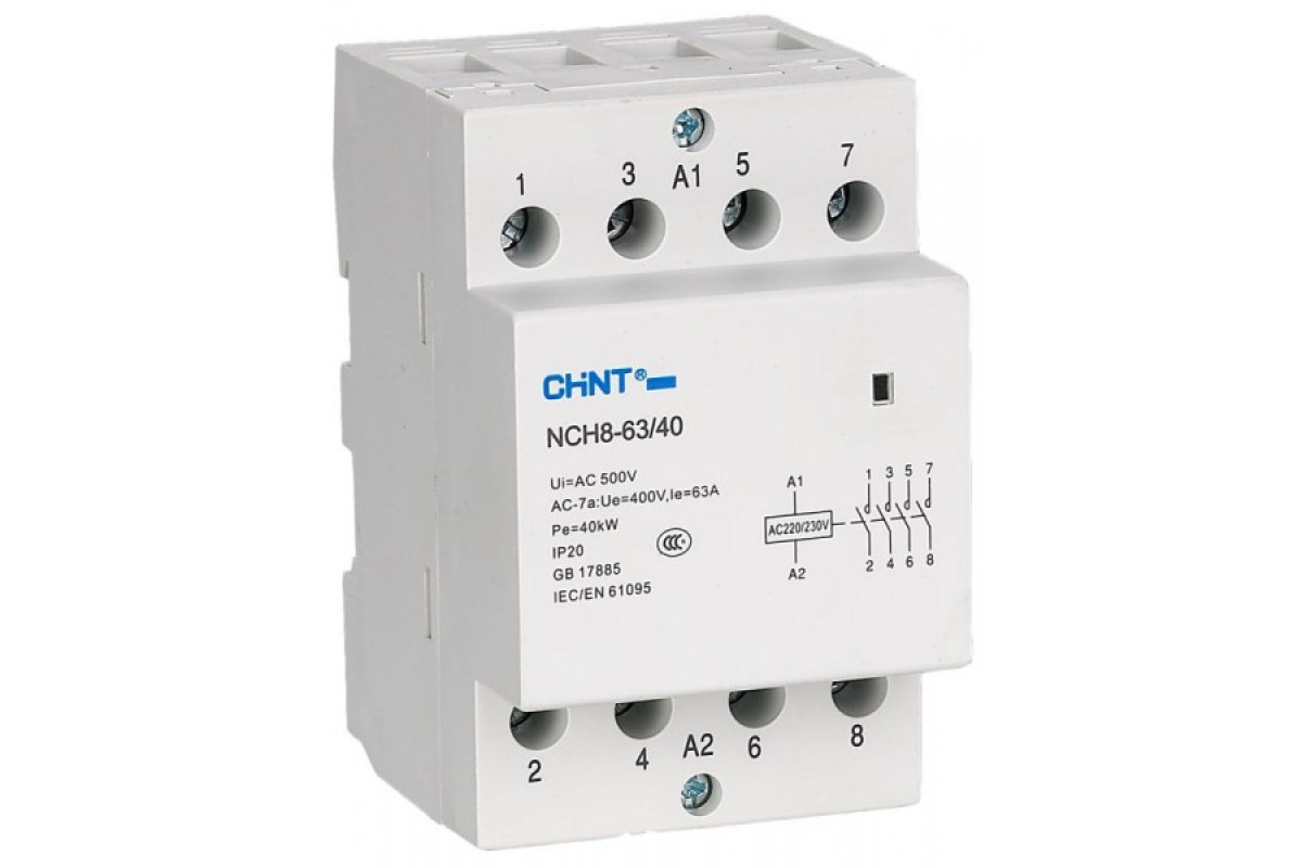 Модульные контакторы NCH8 предназначены для коммутации электрических цепей переменного тока частотой 50 Гц напряжением 230/400 В на промышленных и бытовых объектах.