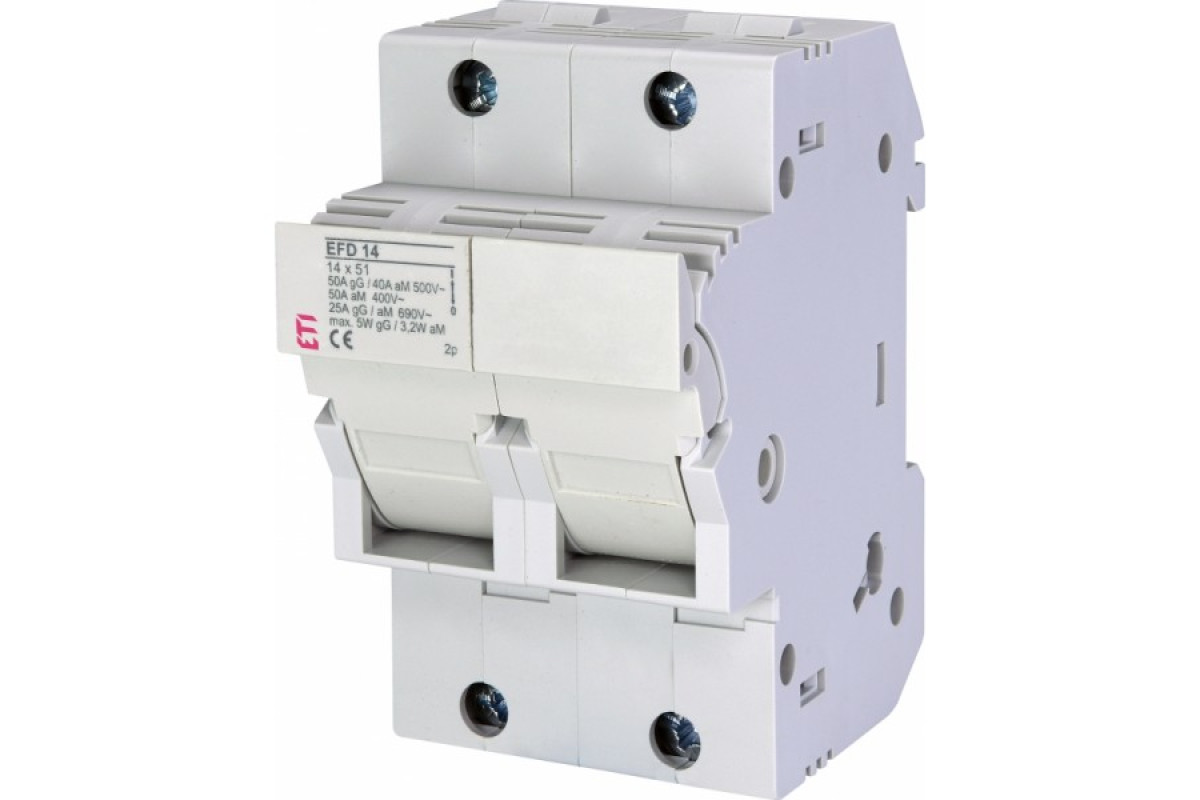 Специальные разъединители для цилиндрических предохранителей ЕТИ – серии EFD, это широкая линейка держателей, которые подходят для основных типоразмеров выпускаемых стандартных предохранителей. Держатель устанавливается на дин-рейку (монтажную планку ТН-35), выполнен из высококачественного пластика и гарантирует полную защиту от случайного прикосновения к токоведущим частям.