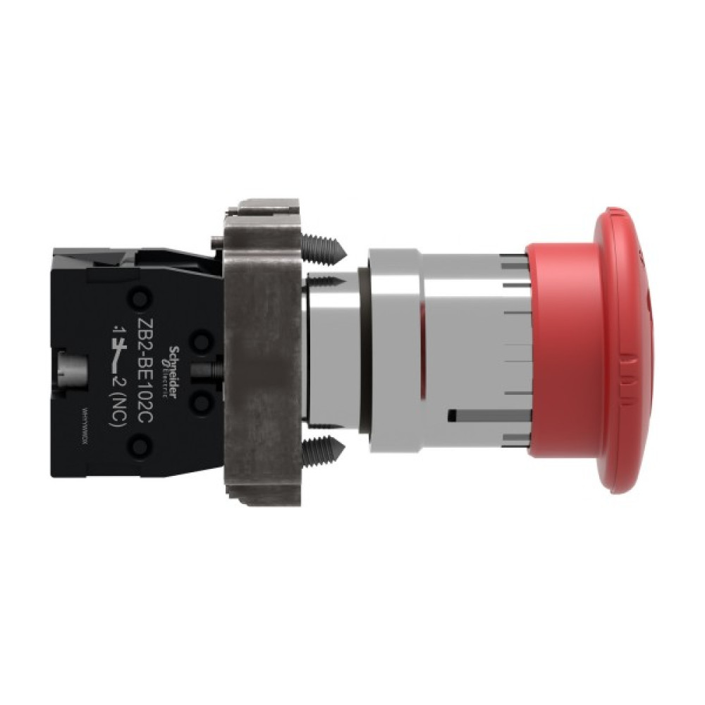 Эта модульная 40-миллиметровая грибовидная красная кнопка аварийной остановки Easy Harmony XB2 работает с помощью механизма поворота и разблокировки. Эту кнопку аварийной остановки/выключения, называемую EMS (Emergency Machine Stop) и EMO (Emergency Off), можно четко различить визуально на расстоянии благодаря четкому цвету и заметной форме гриба. Его корпус/фиксирующий хомут предварительно установлен с контактным блоком NC. Он имеет металлический безель, металлическое фиксирующее основание и металлические винты для стойкости к ударам и вибрации.