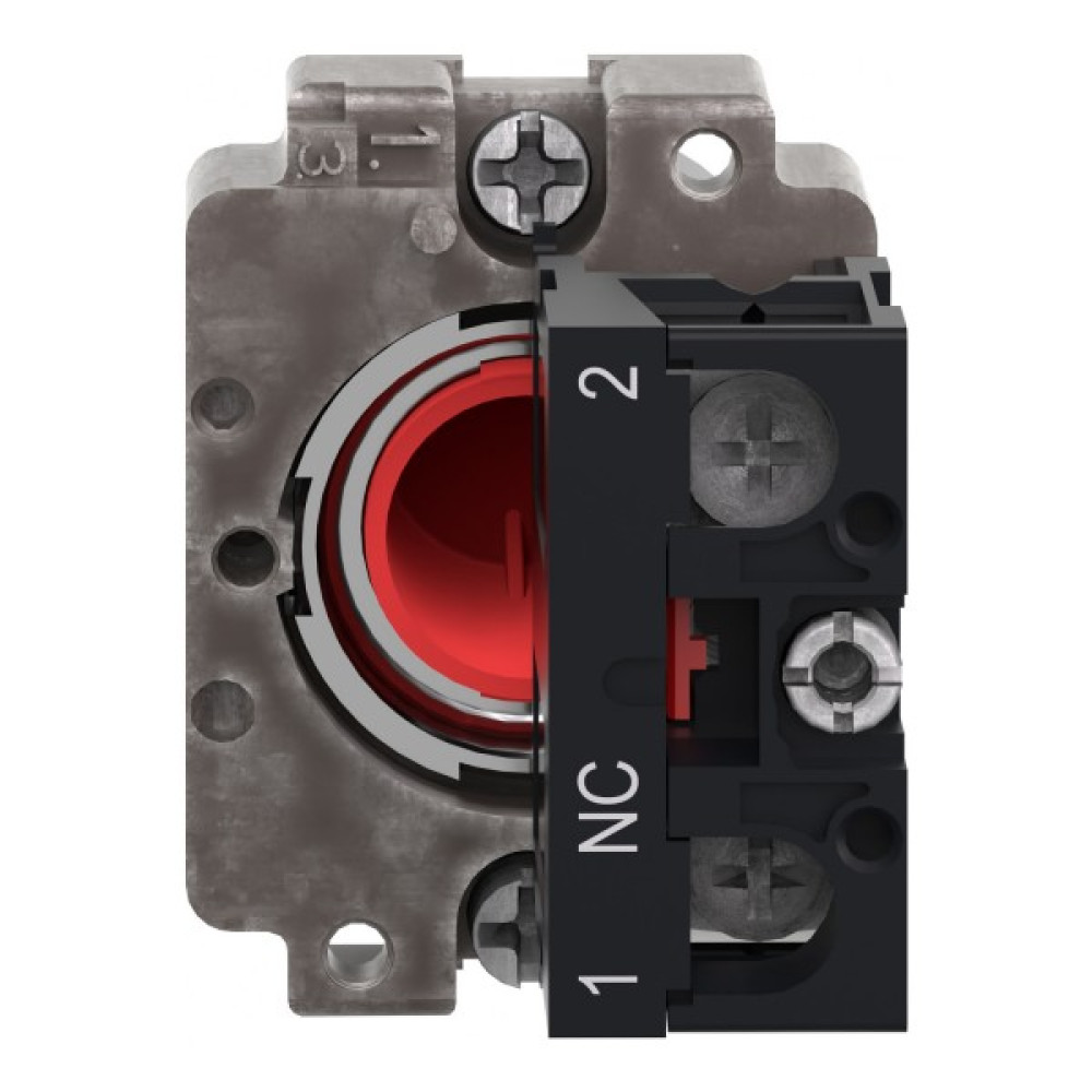 Модульная красная кнопка Easy Harmony XB2 работает с помощью пружинного механизма возврата. Его корпус/фиксирующий хомут предварительно установлен с контактным блоком NC. Он имеет металлический безель, металлическое фиксирующее основание и металлические винты для стойкости к ударам и вибрации.