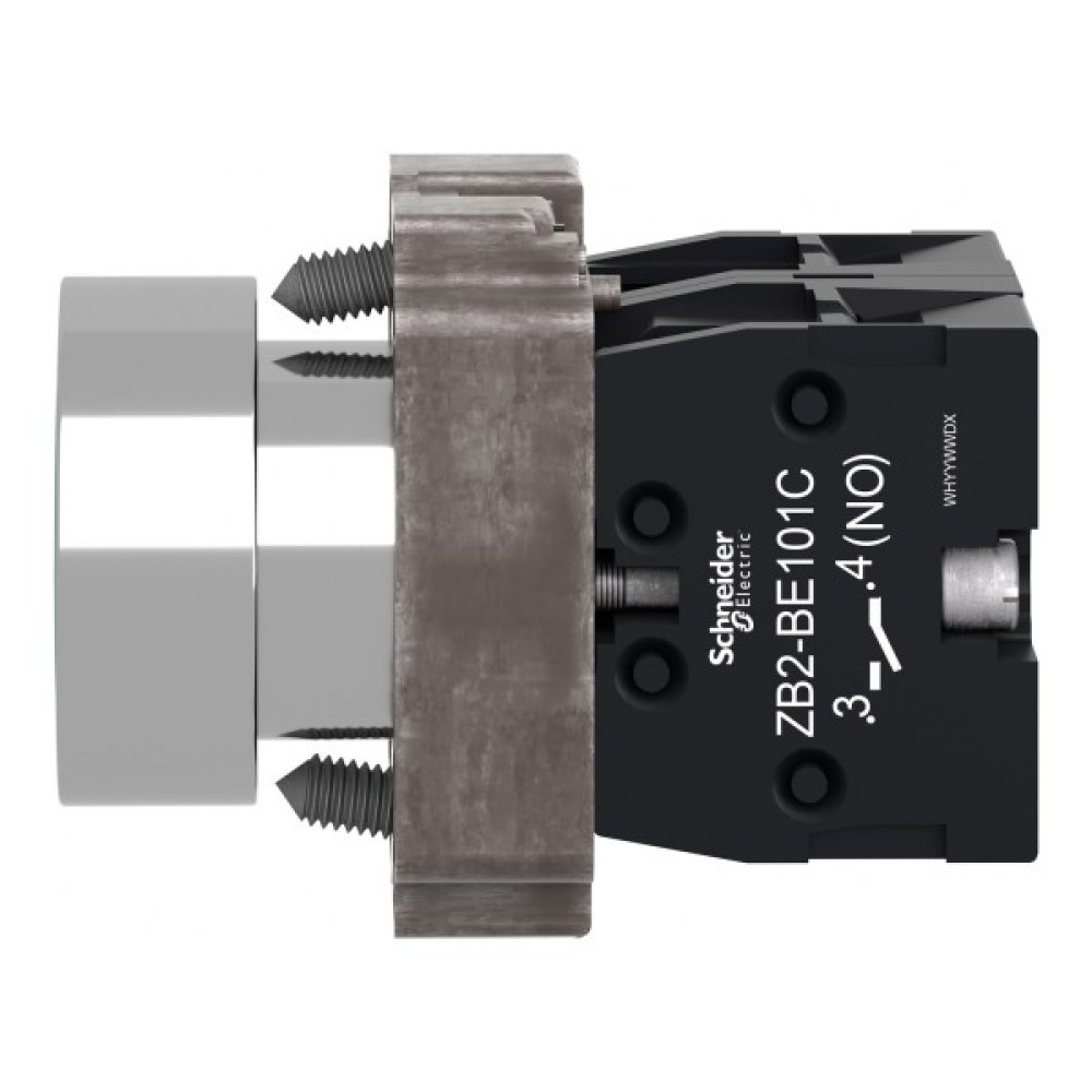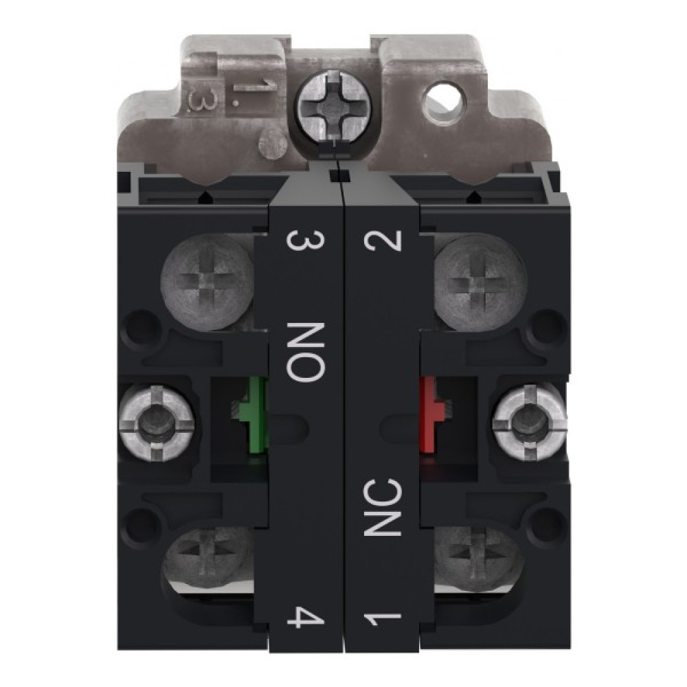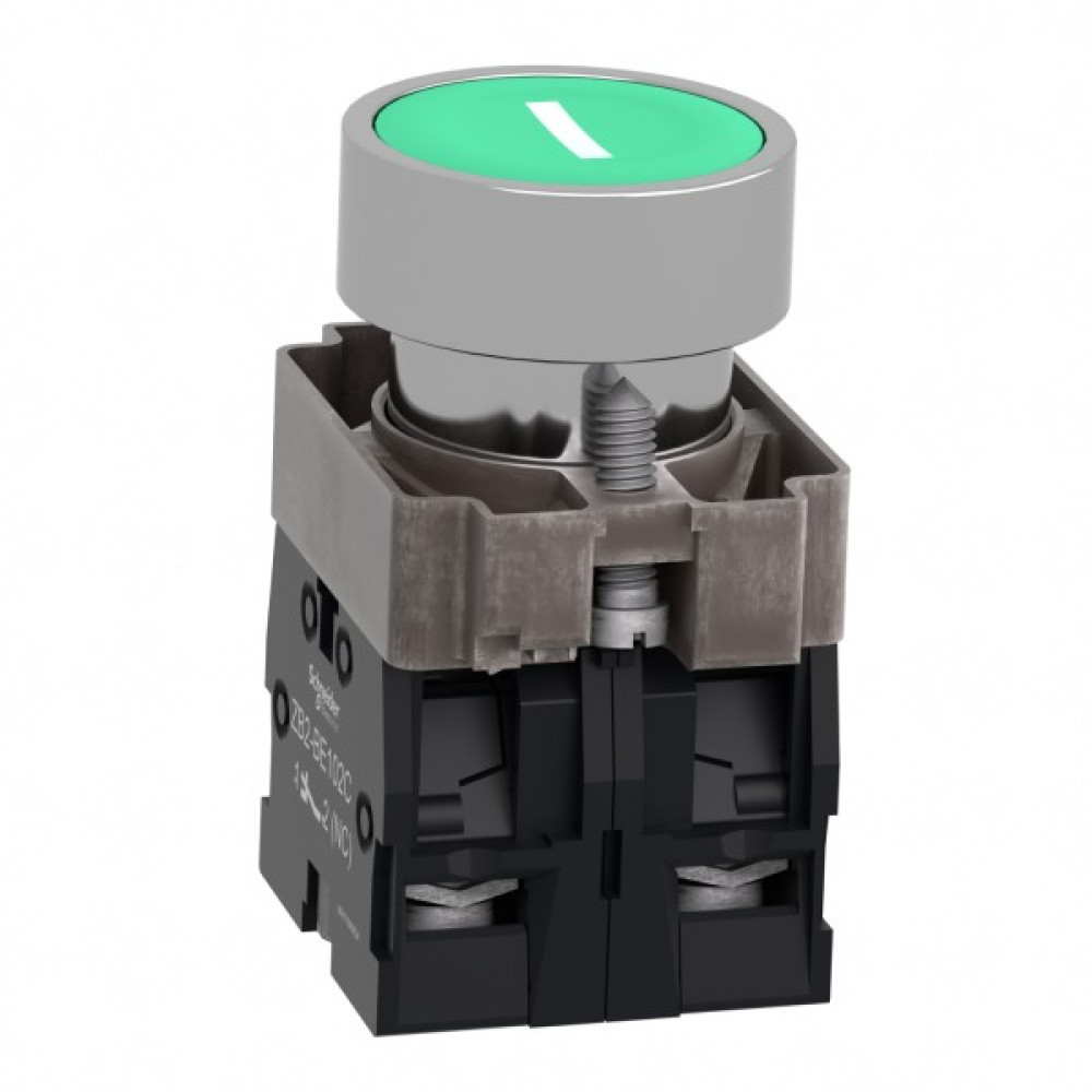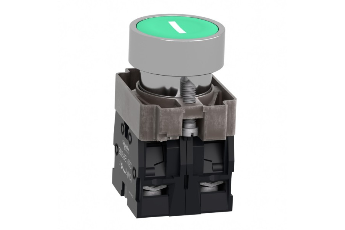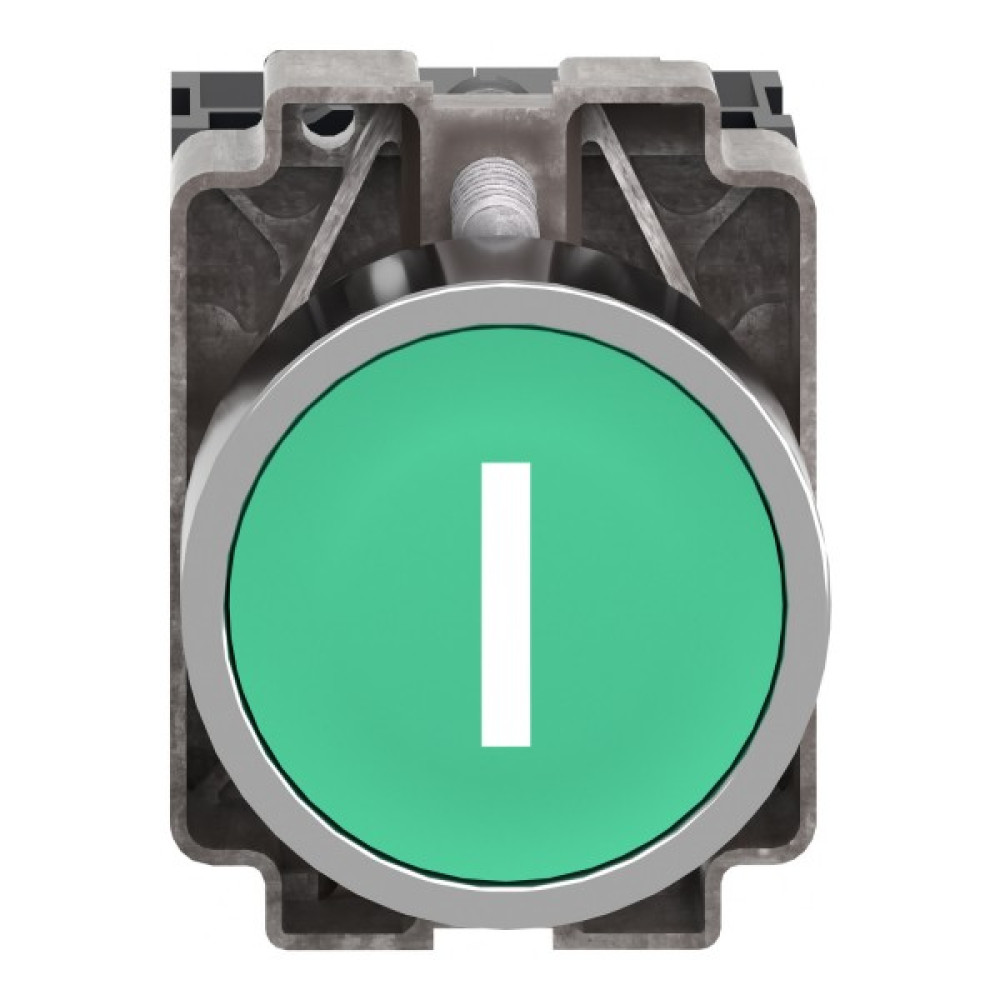 Модульная зеленая кнопка Easy Harmony XB2 работает с помощью пружинного механизма возврата. Он обозначен символом "I". Корпус/фиксирующий хомут предварительно смонтирован с контактным блоком NO. Он имеет металлический безель, металлическое фиксирующее основание и металлические винты для ударостойкости и вибрации.