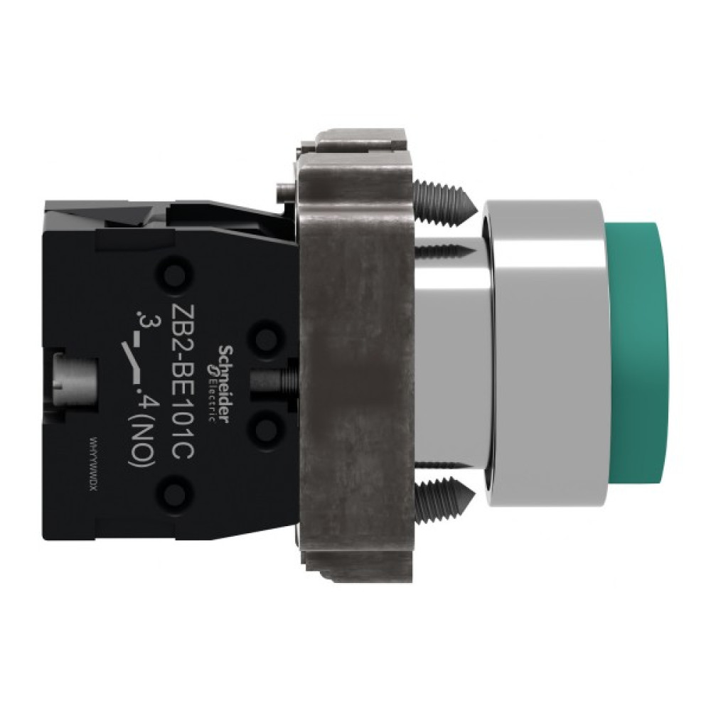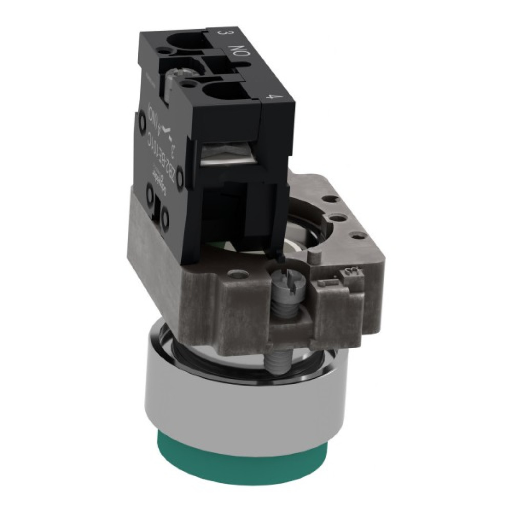 Эта выступающая модульная зеленая кнопка Easy Harmony XB2 работает с помощью механизма пружинного возврата. Корпус/фиксирующий хомут предварительно смонтирован с контактным блоком NO. Он имеет металлический безель, металлическое фиксирующее основание и металлические винты для ударостойкости и вибрации.
