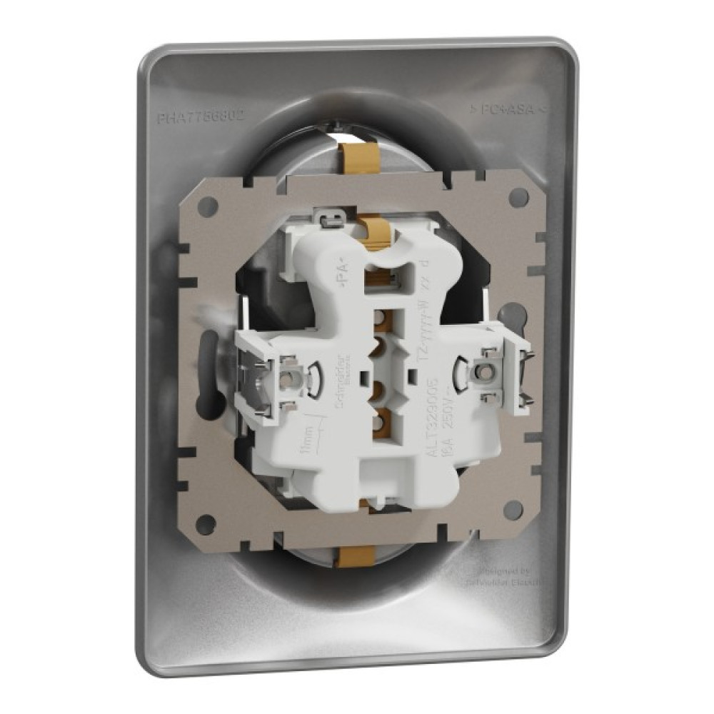 Розетка Schneider Electric Sedna Design & Elements SDD313221 – это готовый к установке продукт цвета алюминий с заземлением. Клеммы винтовые. Розетка – Европейского стандарта. Будучи изготовленной из PC материала, эта розетка достаточно надежна и устойчива. Глянцевая поверхность создает элегантность в комнате. Максимально допустимая мощность – 3680 Вт. Номинальный ток – 16А. Ее ширина 120 мм, высота 85 мм, глубина 49 мм, глубина выступа 24 мм. Вес изделия: 0,095 кг. Способ крепления – винты или монтажные лапки. Товар продается по 1 шт. Конфигурация розетки 2 x 2P + E со шторками. Степень защиты IP20. Также в розетке есть знаки качества CE, EAC. Полное соответствие стандарту IEC 60884-1. Имеет сертификаты AENOR, VDE. Sedna Design and Elements – это коллекция электроустановочных изделий премиум класса, доступных в различных современных цветах и вариантах текстур. Электроустановочные изделия Sedna Design and Elements добавят Вашему дому изюминку в дизайне благодаря использованию древесины, бетона, металла и стекла.