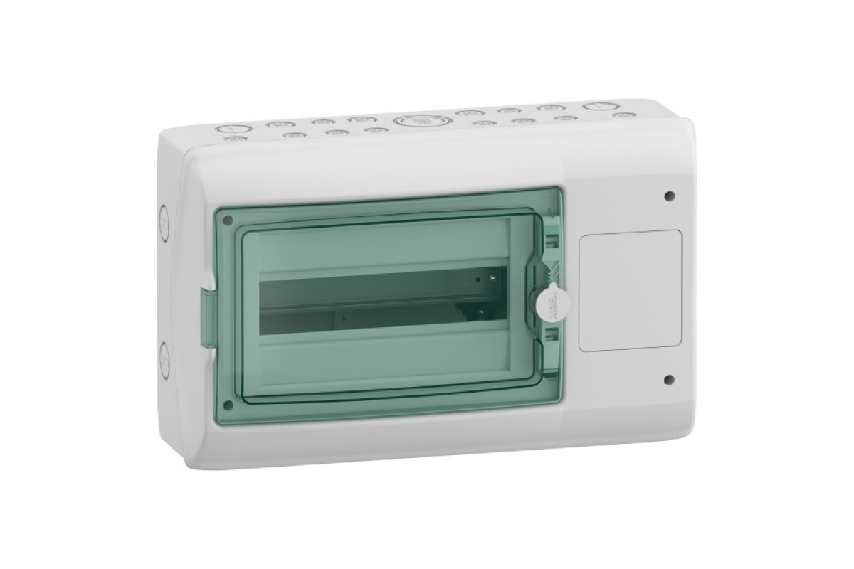 Водонепроникний навісний інтерфейсний щит Mureva, призначений для встановлення модульного обладнання. У щиті можна розмістити всі типи модульних розподільчих пристроїв. Містить зону для встановлення промислових або побутових розеток, кнопок або світлових індикаторів. Ступінь захисту IP65. Ступінь ударозахисту IK09. Щит призначений для внутрішнього або зовнішнього встановлення. У комплект поставки входять прозорі зелені двері для зони встановлення модульного обладнання. Колір світло-сірий (RAL 7035). Кабелі вводяться у верхній частині щита через 3 попередньо підготовлених місця для підведення. Він оснащений задньою пластиною та передньою кришкою з виїмкою. Щит оснащений DIN-рейкою, 2 пластинами для розеток 65x85 мм і 1 пластиною для кнопкового керування. Щит постачається з 1 клемним блоком з 16 виходами (8x10мм² + 8x16мм²). Набір для маркування також постачається в комплекті з виробом. Клас електроізоляції II (подвійна ізоляція). Категорія перенапруги II класу. Розсіювана потужність 28 Вт. Номінальний струм In до 90 А. Цей виріб відповідає стандартам МЕК 61439-1 і 3, МЕК 60670-1 і 24. Розміри: (Ш) 448 мм x (В) 280 мм x (Г) 160 мм. Матеріал являє собою самозатухаючий полімерний матеріал. Його стійкість до полумя та надмірної температури становить 650°C відповідно до стандарту МЕК 60695-2-1. Він стійкий до ультрафіолету. Робоча температура від -25 до 40 °C.