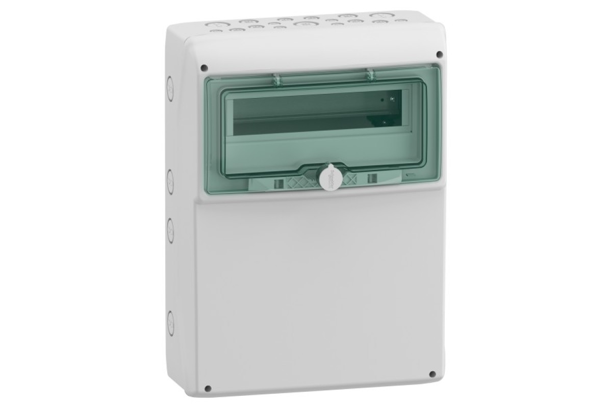 Водонепроникний навісний щит Mureva призначений для встановлення промислових розеток. Розмір для втановлення модульного обладнання 1 ряд з 12 модулів по 18 мм. В нього можуть бути встановлені всі типи модульних і немодульних розподільчих пристроїв. Ступінь захисту IP65. Щит призначений для внутрішнього або зовнішнього встановлення. У комплект поставки входять прозорі зелені двері для зони встановлення модульного обладнання. Колір світло-сірий (RAL 7035). Призначений для встановлення в житлових та невеликих комерційних будівлях і промисловості. Кабелі можна підводити у верхній або нижній частині щита через 17 попередньо підготовлених місць для підведення. Він оснащений задньою пластиною та передньою кришкою з виїмкою. Щит оснащений 1 DIN-рейкою та 1 монтажною пластиною. Набір для маркування постачається разом зі щитом. Клас електроізоляції II (подвійна ізоляція). Категорія перенапруги II класу. Розсіювана потужність становить 28 Вт. Номінальний струм In до 90А. Цей продукт відповідає стандарту МЕК 61439-3. Розміри: (Ш) 340 мм x (В) 460 мм x (Г) 160 мм. Вага виробу 2,8 кг. Матеріал являє собою самозатухаючий полімерний матеріал. Його стійкість до полумя та надмірної температури становить 650°C згідно з МЕК 60695-2-1. Він стійкий до ультрафіолету. Ступінь ударозахисту IK09. Робоча температура від -25°C до 40°C. Робоча температура від -25°C до 40°C.