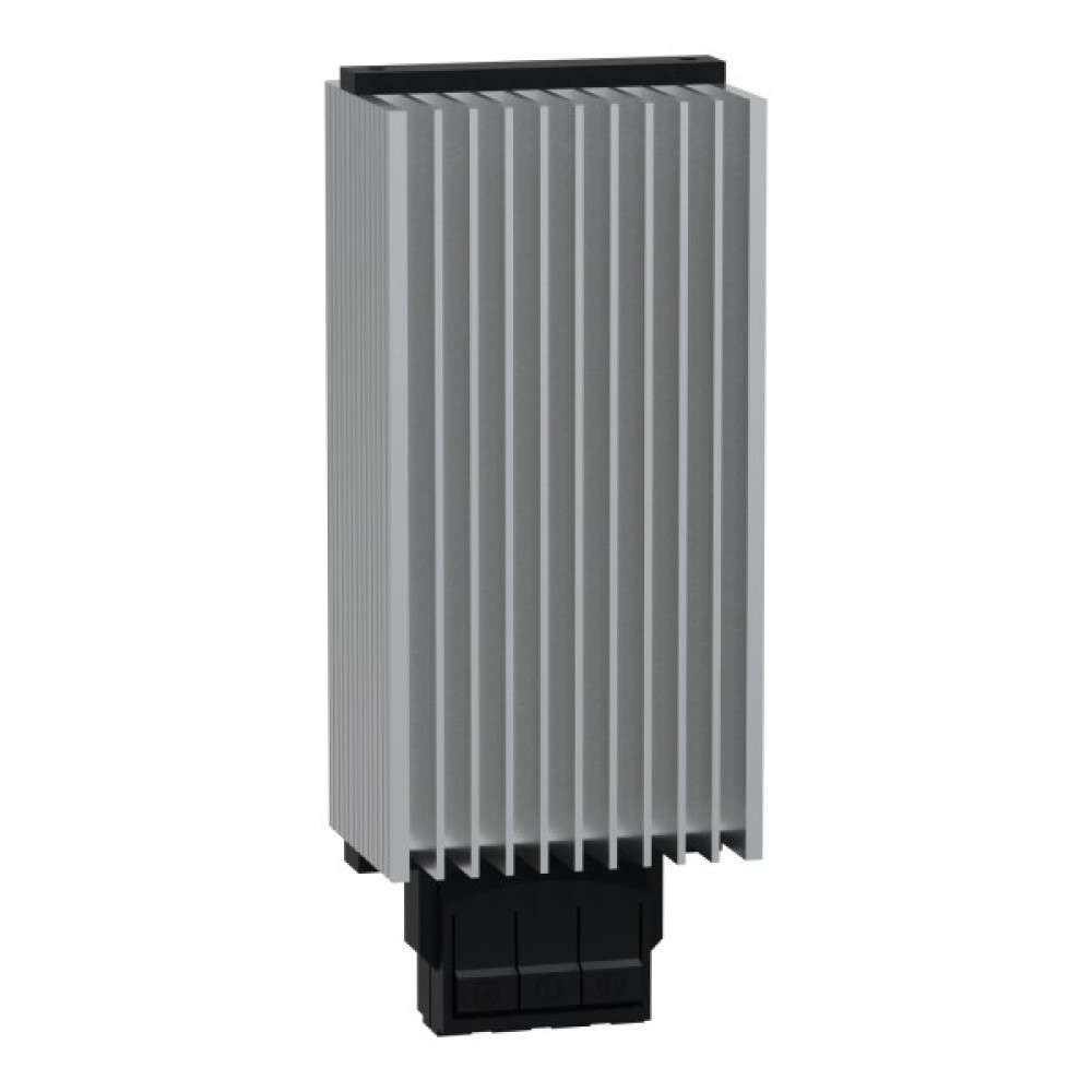 Нагрівальний резистор ClimaSys PTC. 100 Вт, 110-250 В змінного струму, 50/60 Гц. Вертикальне робоче положення. Робоча температура навколишнього середовища -40-70 °C. Кріплення на DIN-рейку 35 мм. Корпус із екструдованого алюмінію. Ступінь захисту IP20. Необхідний електричний захист, який повинен бути встановлений з терморегулятором.