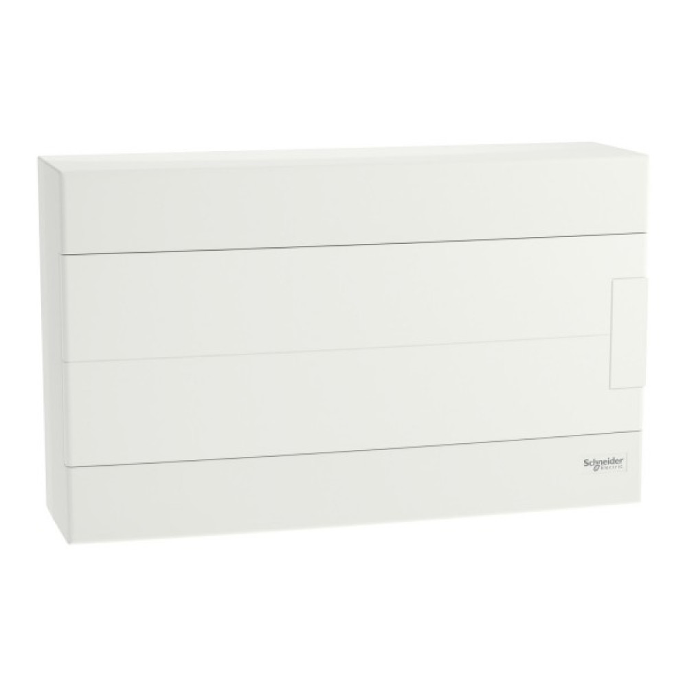 Щит Easy9 EU це навісний розподільчий щит для модульного обладнання. Він розміром 1 ряд 18 модулів по 18 мм та в нього може бути встановлено будь-яке модульне обладнання. Щит поставляється разом з клемниками земля та нейтраль, та їх кріпленням. Кожен клемник має 16 клем підключення (8x16мм² + 8x10мм²). Він поставляється з білими дверима, які переставляються та відкриваються на кут 180°. Колір щита - білий (RAL 9003). Щит призначений для встановлення в приміщенні. Ступінь захисту IP40 з закритими і IP30 з відкритими дверима. Щит не має кабельних вводів, їх необхідно робити за допомогою дрилю. Він призначений для нового встановлення або заміни існуючого щита в житлових та малих комерційних будівлях. Його номінальний струм In 63 А. Номінальна напруга ізоляції Ui - 500 В. Номінальна робоча напруга Ue - 400 В. Внутрішня комплектація щита: зйомне шассі з DIN-рейкою, пластрон. Розміри: (Ш) 364 мм x (В) 317 мм x (D) 103 мм. Ширина 36 модулів по 9 мм. Вага виробу - 1,15 кг. Щит виготовлено з самозатухаючого пластику. Його стійкість до вогню та надмірної температури становить 650°C протягом 30 хв. Клас електроізоляції ІІ (подвійна ізоляція). Ступінь забруднення 2. Відповідно до стандарту МЕК 62262 ступінь ударозахисту IK07. Робоча температура від -25°C до +60°C. Температура зберігання від -25°С до +70°С. Даний щит відповідає стандарту МЕК 60670-1-24.
