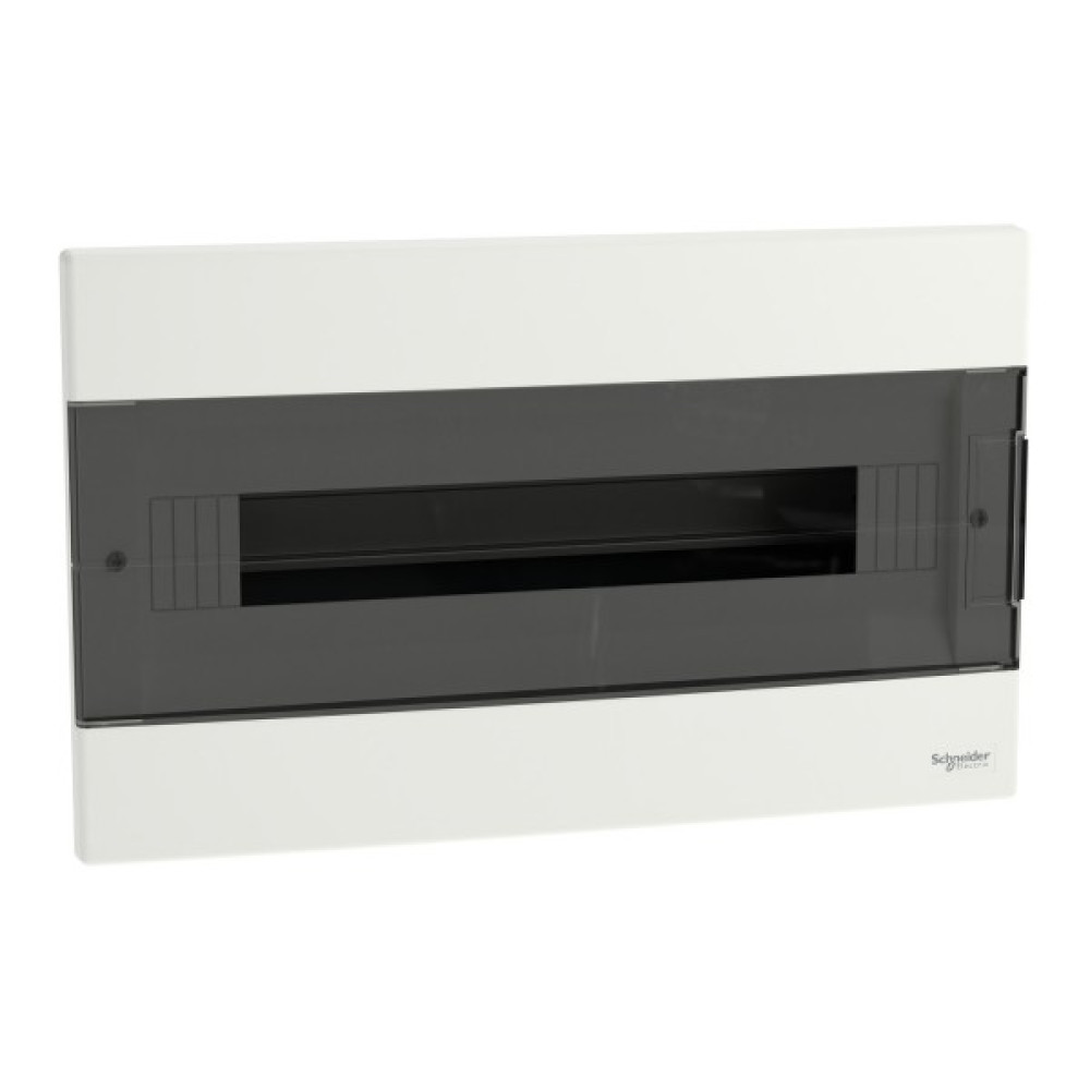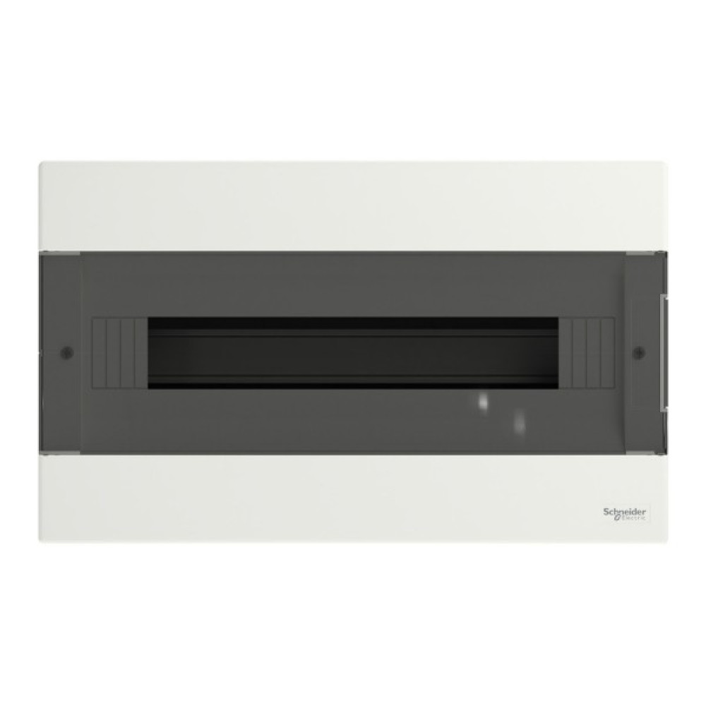 Щит Easy9 EU це врізний розподільчий щит для модульного обладнання. Він розміром 1 ряд 18 модулів по 18 мм та в нього може бути встановлено будь-яке модульне обладнання. Щит поставляється разом з клемниками земля та нейтраль, та їх кріпленням. Кожен клемник має 16 клем підключення (8x16мм² + 8x10мм²). Він поставляється з димчастими дверима, які переставляються та відкриваються на кут 180°. Колір щита - білий (RAL 9003). Щит призначений для встановлення в приміщенні. Ступінь захисту IP40 з закритими і IP30 з відкритими дверима. Підведення кабелю можливо здійснити з 4 сторін щита через кабельні вводи. Він призначений для нового встановлення або заміни існуючого щита в житлових та малих комерційних будівлях. Його номінальний струм In 63 А. Номінальна напруга ізоляції Ui - 500 В. Номінальна робоча напруга Ue - 400 В. Внутрішня комплектація щита: захисний картон, зйомне шассі з DIN-рейкою, пластрон. Розміри: (Ш) 400 мм x (В) 245 мм x (D) 99 мм. Ширина 36 модулів по 9 мм. Вага виробу - 1,19 кг. Щит виготовлено з самозатухаючого пластику. Його стійкість до вогню та надмірної температури становить 650°C протягом 30 хв. Клас електроізоляції ІІ (подвійна ізоляція). Ступінь забруднення 2. Відповідно до стандарту МЕК 62262 ступінь ударозахисту IK07. Робоча температура від -25°C до +60°C. Температура зберігання від -25°С до +70°С. Даний щит відповідає стандарту МЕК 60670-1-24.