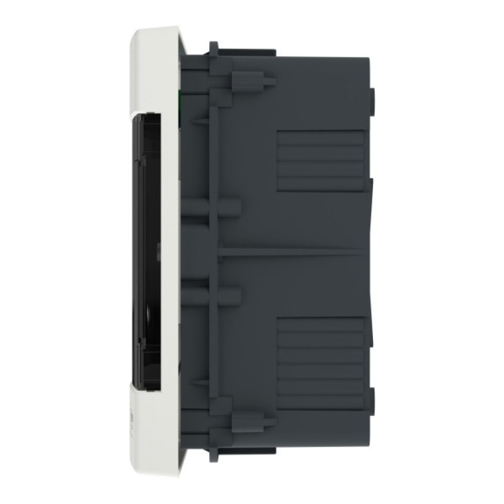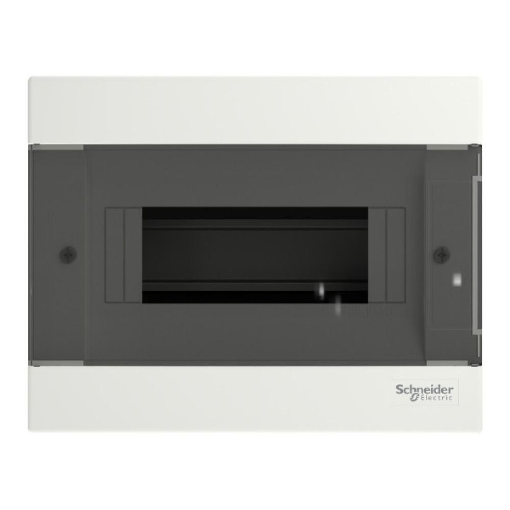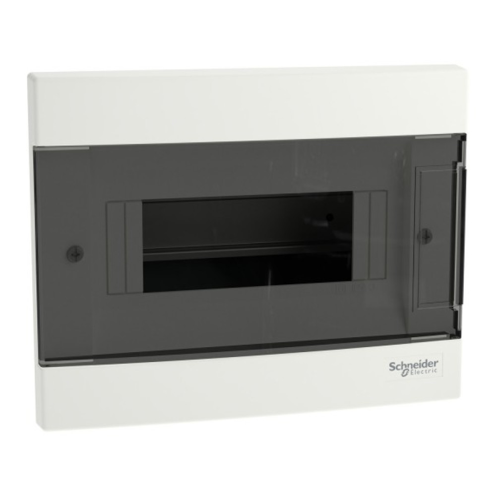 Щит Easy9 EU це врізний розподільчий щит для модульного обладнання. Він розміром 1 ряд 8 модулів по 18 мм та в нього може бути встановлено будь-яке модульне обладнання. Щит поставляється разом з клемниками земля та нейтраль, та їх кріпленням. Кожен клемник має 8 клем підключення (4x16мм² + 4x10мм²). Він поставляється з димчастими дверима, які переставляються та відкриваються на кут 180°. Колір щита - білий (RAL 9003). Щит призначений для встановлення в приміщенні. Ступінь захисту IP40 з закритими і IP30 з відкритими дверима. Підведення кабелю можливо здійснити з 4 сторін щита через кабельні вводи. Він призначений для нового встановлення або заміни існуючого щита в житлових та малих комерційних будівлях. Його номінальний струм In 63 А. Номінальна напруга ізоляції Ui - 500 В. Номінальна робоча напруга Ue - 400 В. Внутрішня комплектація щита: захисний картон, зйомне шассі з DIN-рейкою, пластрон. Розміри: (Ш) 215 мм x (В) 170 мм x (Г) 96,5 мм. Ширина 16 модулів по 9 мм. Вага виробу - 0,58 кг. Щит виготовлено з самозатухаючого пластику. Його стійкість до вогню та надмірної температури становить 650°C протягом 30 хв. Клас електроізоляції ІІ (подвійна ізоляція). Ступінь забруднення 2. Відповідно до стандарту МЕК 62262 ступінь ударозахисту IK07. Робоча температура від -25°C до +60°C. Температура зберігання від -25°С до +70°С. Даний щит відповідає стандарту МЕК 60670-1-24.