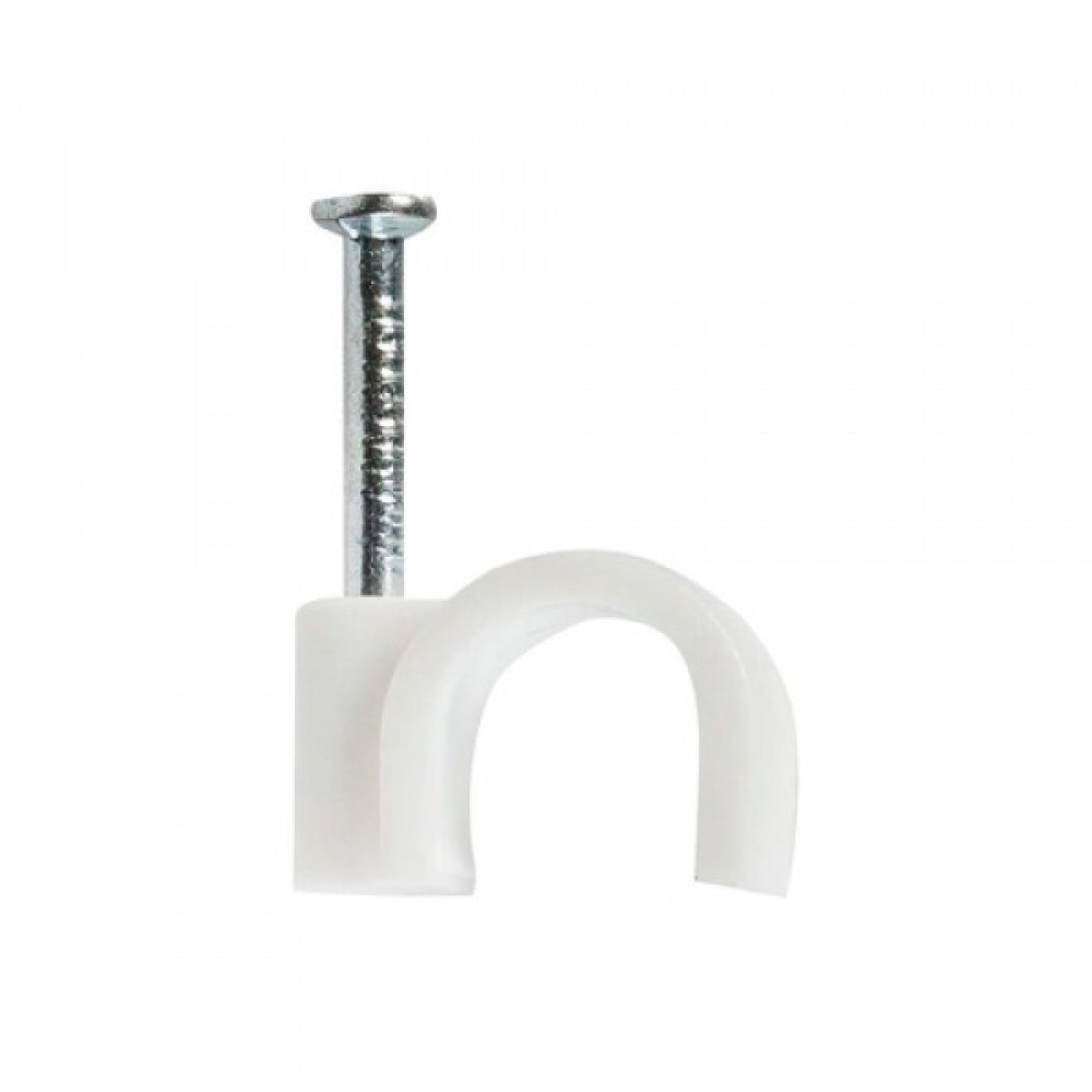 Скоба з цвяхом для кріплення круглого кабелю буде ідеальним рішенням за необхідності швидкого кріплення кабелю до стіни або стелі. Єдиним обмеженням буде твердість матеріалу, на який буде кріпитися кабель.