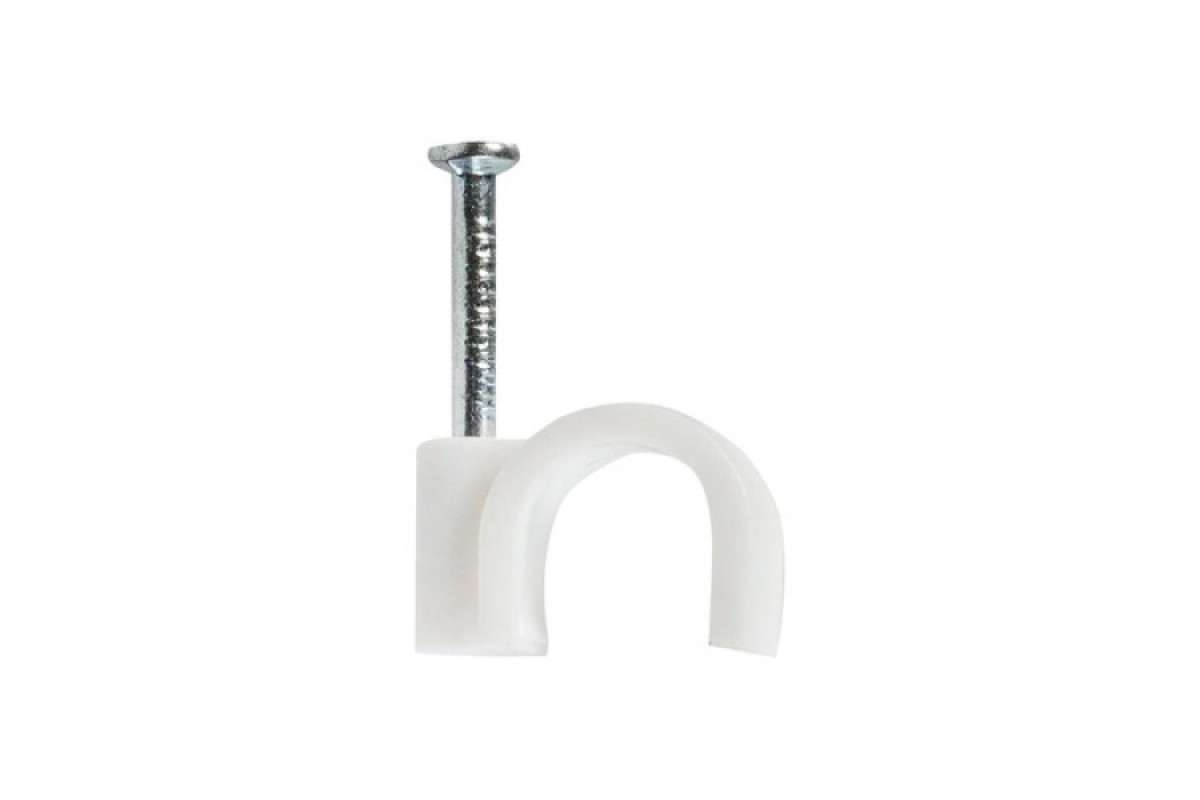 Скоба з цвяхом для кріплення круглого кабелю буде ідеальним рішенням за необхідності швидкого кріплення кабелю до стіни або стелі. Єдиним обмеженням буде твердість матеріалу, на який буде кріпитися кабель.