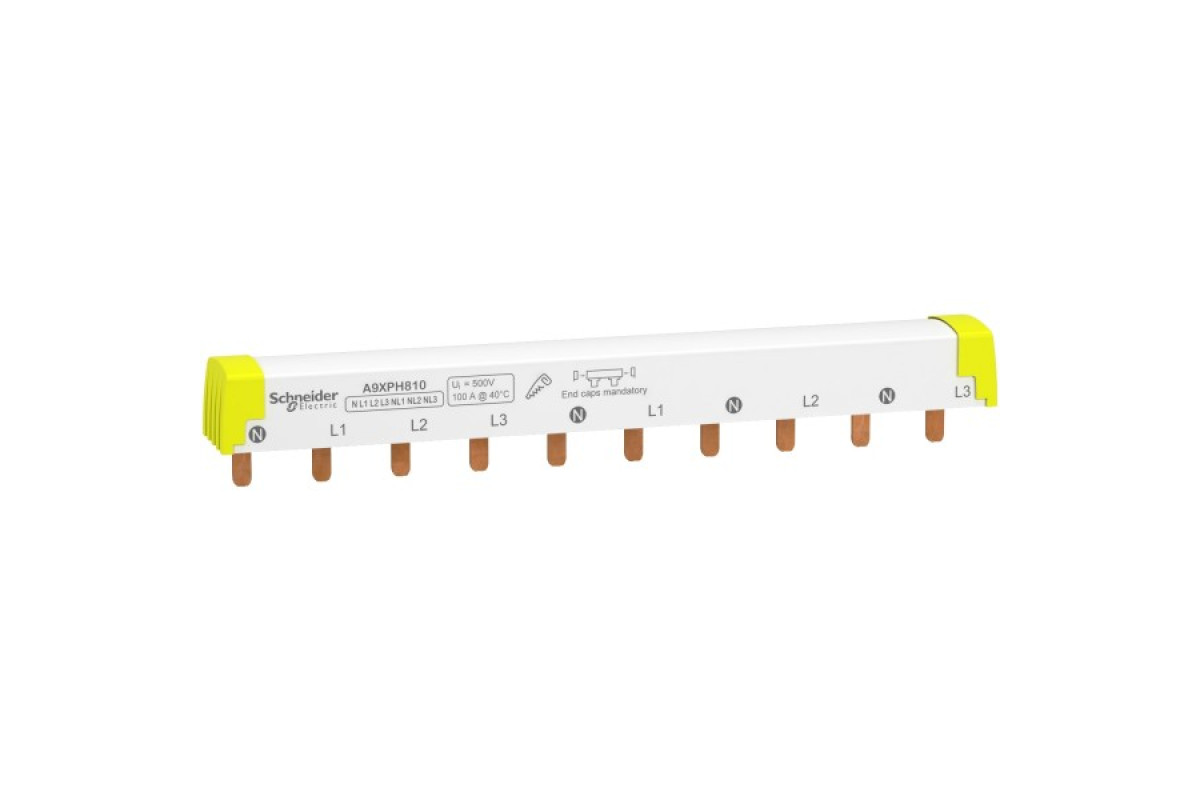 A9, гребінчаста нижня шина, 3L+N, ширина 18 мм, 10 модулів, 80 А