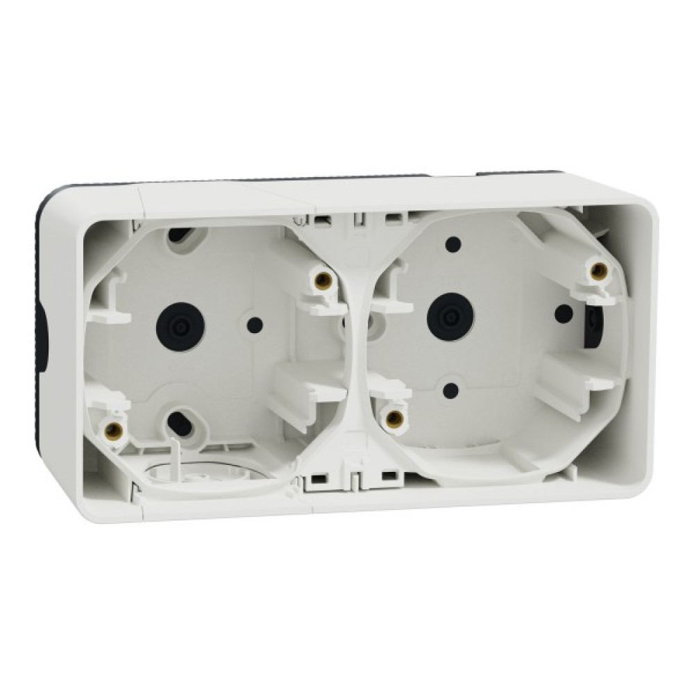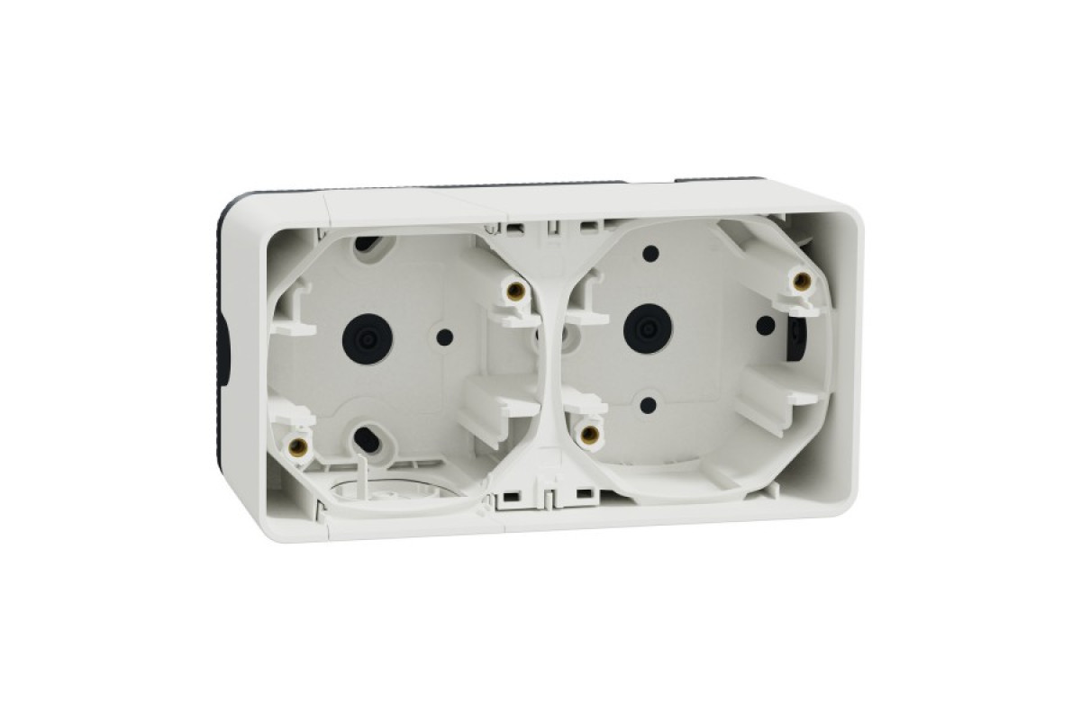 Двопостовий бокс Mureva Styl для поверхневого монтажу зі ступенем захисту ІР55. Має достатньо простору всередині для зручного прокладання кабелю. Може встановлюватись як в середині приміщення, так і зовні. Тип монтажу - горизонтальний. Розміри боксу: 147х76х54 мм.